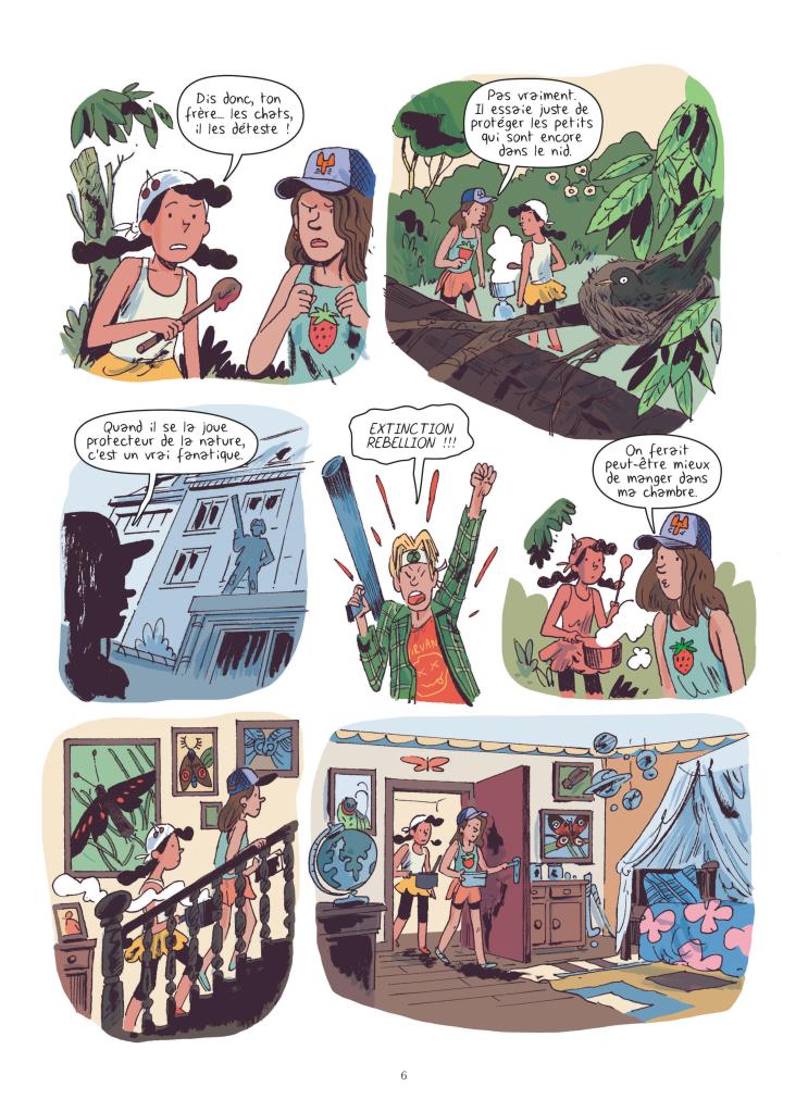 Chaque chose à sa place et dans une paix mutuelle, ce n’est pas gagné dans notre monde actuel. Mais si on laisse faire la poésie botanique et si on met au pouvoir l’imagination des enfants, qui savent que de grands pouvoirs impliquent de grandes irresponsabilités qui peuvent finalement s’avérer salutaires, peut-être a-t-on une chance d’inverser la tendance et d’échapper aux pires scénarios. Ceux dont tout le monde a connaissance depuis de nombreuses années mais dont la majorité semble bien décider à se dire que ce n’est pas à elle mais à l’autre de faire le geste. Et c’est comme ça, par manque de courage de nos institutions, par soudoiement des puissantes industries qui tentent de nous faire croire que le mal qu’on continue à faire à notre planète est bien (roulez à l’électrique mais continuez de rouler, surtout, ne faites pas moins de kilomètres), et surtout par manque d’envie de sortir de nos confortables habitudes et routine, que le statu-quo opère. Et que la facilité, le « on a toujours fait comme ça », opère.
