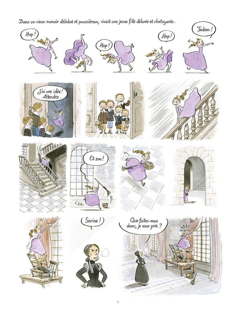 Vous en avez soupé des intrigues médiévales qui finissent par toutes se ressembler? Non content d’investir Serine d’une force de frappe langagière affranchie du bon françois, Flore Vesco et le talentueux duo Kerascoët explosent le décor, permettent à leur héroïne d’être témoin, de haut en bas, de la vie de château et toutes les vies qui y ont lieu, en cuisines, au cachot, etc. et mettent à jour une galerie de personnages haute en couleurs, en lumière et en obscurité aussi. Serine ne se laisse jamais aller à être corrompue et quand on croit se débarrasser d’elle, elle trouve de nouveaux alliés et arrive à ses fins en amusant la galerie. Pour une fois que les jeux permettent, en coulisses, d’oeuvrer non pas à faire un mauvais coup au peuple mais à le servir, profitons-en.