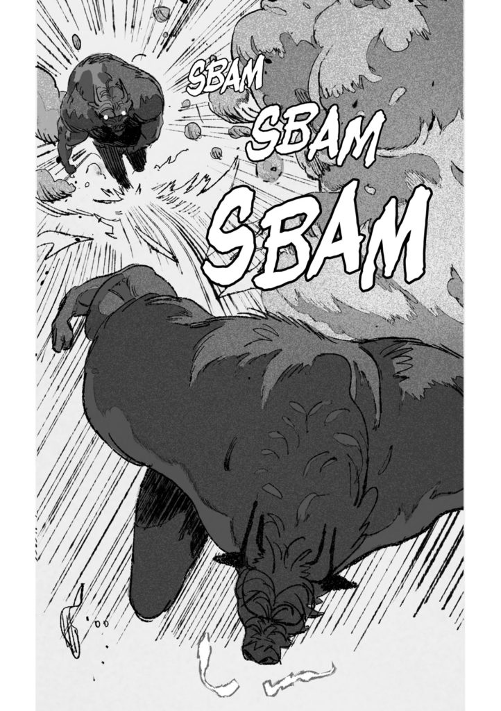 Sacrifié à la vitesse, à la rudesse, pour le meilleur et pour le pire, The Frontier se vit dans l’urgence et le fun, même si on conseille aux âmes sensibles de s’abstenir. Je n’ai pas fait le décompte des morts, mais il y a de fortes chances que John Wick ou autres Fast & Furious passent pour des amateurs à côté du quintet infernal. Alors les plans américains sont très bien, mais j’ai trouvé que les gros plans et les plans d’ensemble manquaient parfois de précision, trop expédiés, comme si Fioriniello n’avait pas eu le temps de peaufiner ou qu’il n’avait pas su sur quel pied danser entre semi-réalisme incisif et manga minimaliste. Alors, c’est l’histoire de quelques cases, dont la dernière, mais ça fait tache alors que les auteurs réussissent à nous plonger corps et âme (damnée) dans cette histoire de survival à sens unique, inique, cynique.