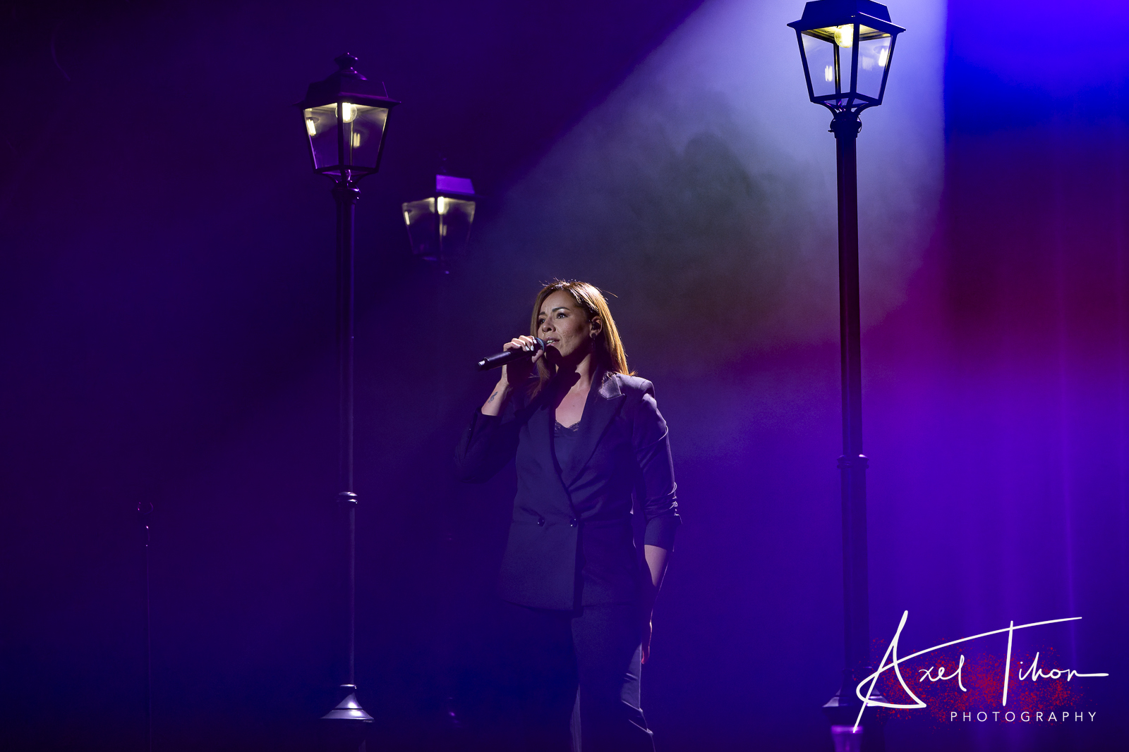 Dans un joli décor « sous le ciel de Paris », avec ses lampadaires et quelques bancs de quartier, la chanteuse s’est promenée dans le répertoire de Piaf avec une facilité déconcertante. Piano et accordéon comme seuls compagnons, elle nous a apporté de la passion, de la sensibilité avec des moments forts. Lorsqu’elle s’adresse à « Mon Dieu », on est au bord des larmes.