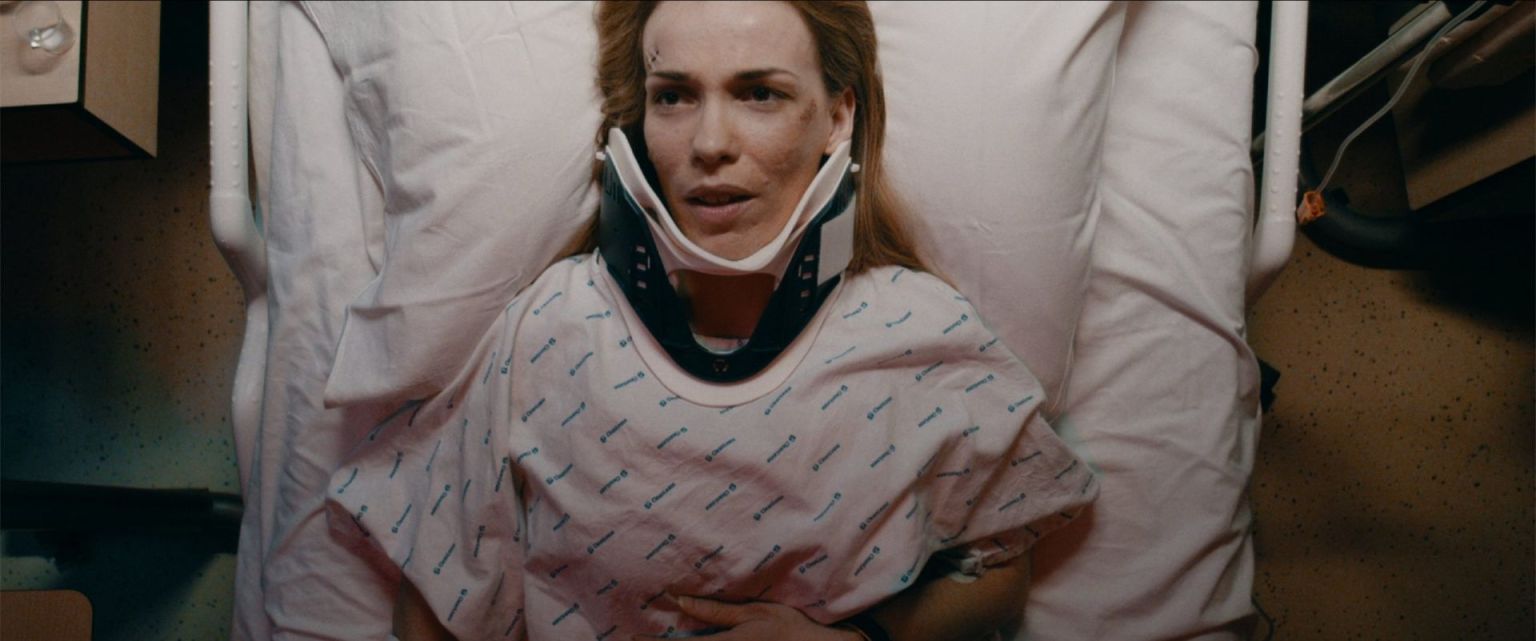Une femme dans de beaux draps. Suite à un grave accident de voiture, une jeune femme (Coralie Denis) se retrouve immobilisée dans un lit d’hôpital, dans une obscurité presque complète.