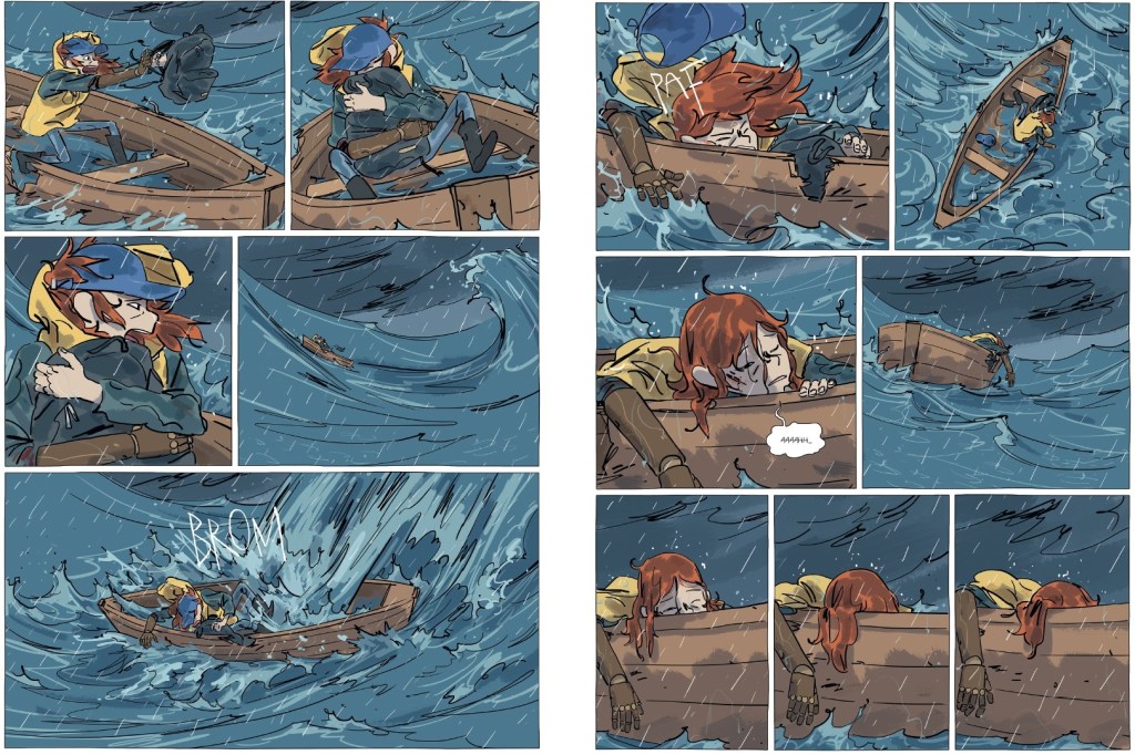 Entre le ciel et l’océan à perte de vue (un joli équilibre et de magnifiques couleurs donnent le ton et l’ambiance), il y a cette barque et ses habitants, survivants… pour le moment. Le plaisir graphique et narratif qui en découle est irrésistible. Même si c’est dur, même si c’est le pire, hissez hauts, matelots. Les voyages forment la jeunesse, l’arrivée à l’âge adulte encore plus. Un album impressionnant et inattendu de bout en bout.
