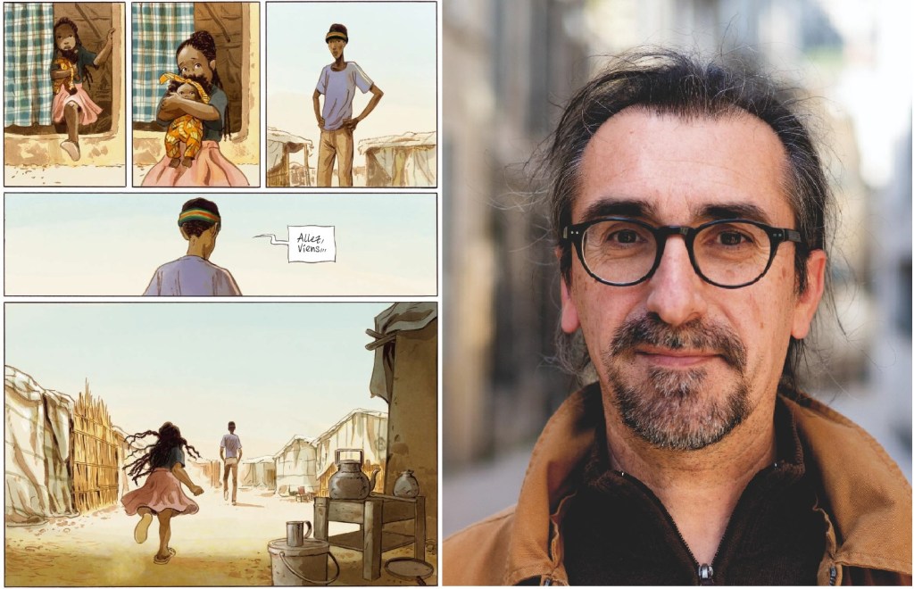 Homme de voyages et d’Afrique, l’auteur de bande dessinée Jean-Denis Pendanx est parti en 2016 au Soudan du Sud, dévasté par une guerre civile et envoyant sur les routes, à travers le désert, des milliers de gens, sans épargner les enfants. Appelé par l’Unicef dans le camp de Bentiu, ville-monde où l’on survit par le système D, Jean-Denis y a animé des ateliers testant les vertus de l’art chez les réfugiés. Avec des résultats très prometteurs. Huit ans plus tard, Jean-Denis Pendanx en a tiré une fiction criante de vérité et qui suit le destin d’un Nialony et son frère Georges. Interview.
