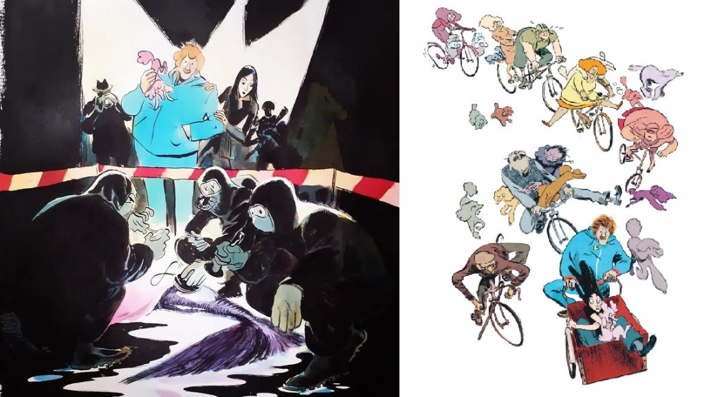 Dans cet album tellement généreux (près de 300 planches) et feuilletonesque, qui nous surprend dans l’émotion qu’il amène, mais aussi la poésie, la loufoquerie, les rebondissements, les sensations aussi, le duo si bien huilé fait encore une fois des prouesses, cascades à la clé, avec des humains mais aussi des chiens (rassurez-vous, aucun n’a été blessé pendant la réalisation de cet album).