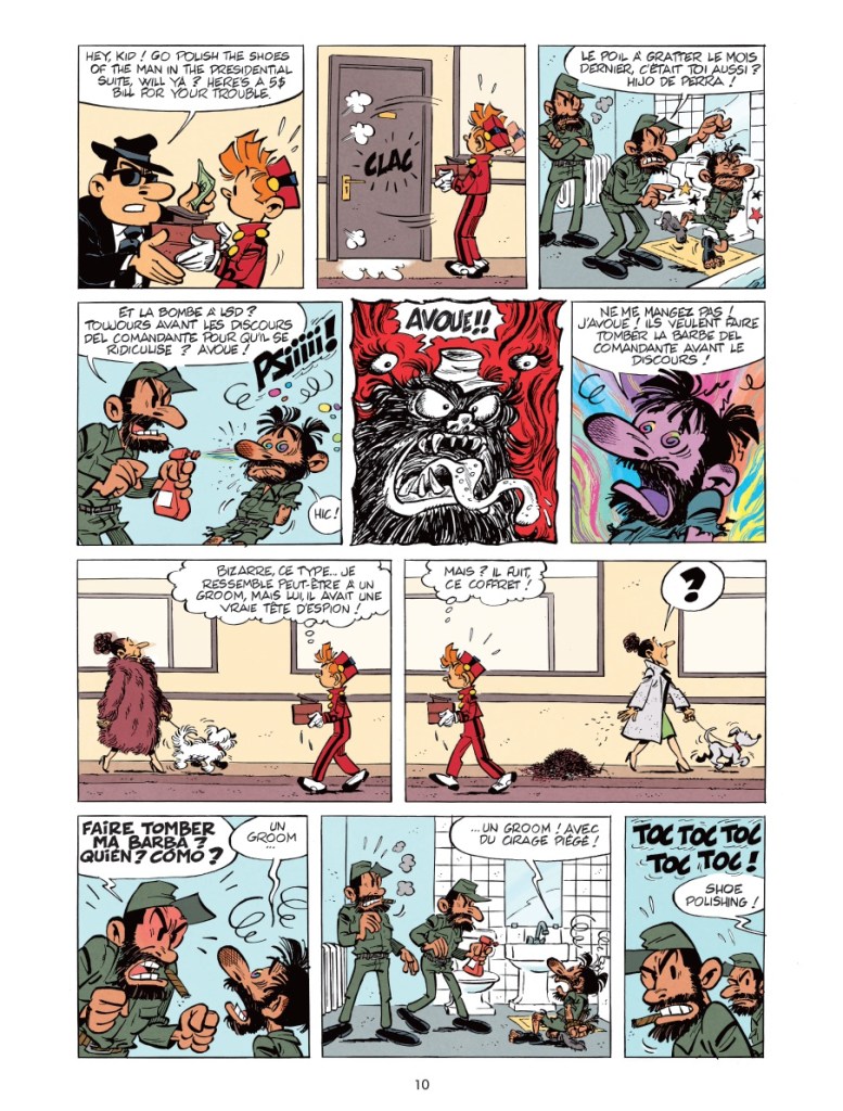 Résumé d’Une aventure classique de Spirou et Fantasio – La baie des Cochons par Dupuis : Quand les aventures de Spirou se la jouent crossover avec les péripéties de l’Histoire. Fidel Castro est complètement furioso ! Car tout autour de lui, ça papote et ça complote, afin de l’éliminer du jeu politique. Même ses propres hommes, infiltrés par la CIA, lui offrent des cigares piégés ! En voyage à New York pour un discours historique à l’ONU, le leader cubain est sur ses gardes, totalement paranoïaque. Tout l’inverse de Spirou, venu en tant que simple reporter pour couvrir l’événement. Mais notre groom ignore encore qu’il va se retrouver accusé d’attentat contre Castro puis emmené de force à Cuba ! Ses seuls espoirs : Fantasio, qui s’envole aussitôt vers l’Amérique du Sud, ainsi que Seccotine, déjà à Cuba pour un reportage. À moins que cette dernière ne se laisse séduire par les idéaux communistes du charismatique Che Guevara…