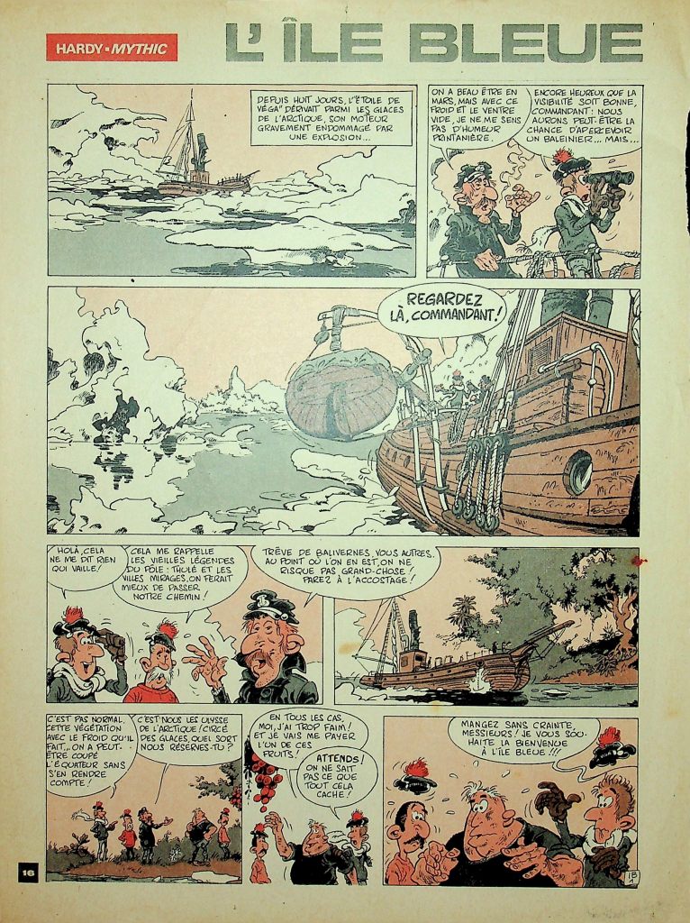 Arrivés à la rubrique bande dessinée (nous étions au début du grand boum de la BD), René Haquin demanda à Thierri s’il était aisé de recruter des dessinateurs. Ce dernier, entre deux bouffées de pipe, dit presque au mot près : « Les dessinateurs ! Si on ferme la porte, ils entreront par la fenêtre. Par contre, je serais ravi qu’il en aille de même pour les scénaristes. » Je me demande si j’ai mis plus de quinze jours à frapper à sa porte, un court scénario sous le bras (L’île bleue qui sera dessiné par Marc Hardy).