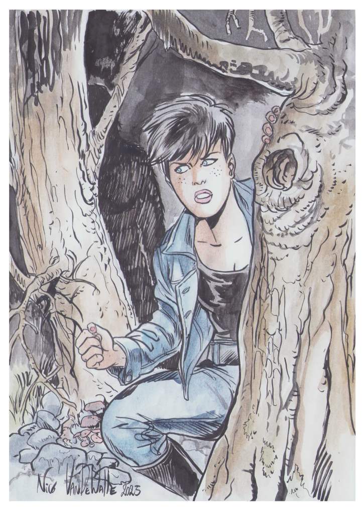 Nico(las Van De Walle) : Bonjour, Je travaille actuellement sur un deuxième album de Rubine, qui s’intitulera Bodyguards, sur scénario de Mythic. Je continue aussi la mise en couleurs de mon album d’Adelin et Irina, La cité pétrifiée. J’aimerais aussi terminer quelques histoires courtes, de 6 à 12 pages.