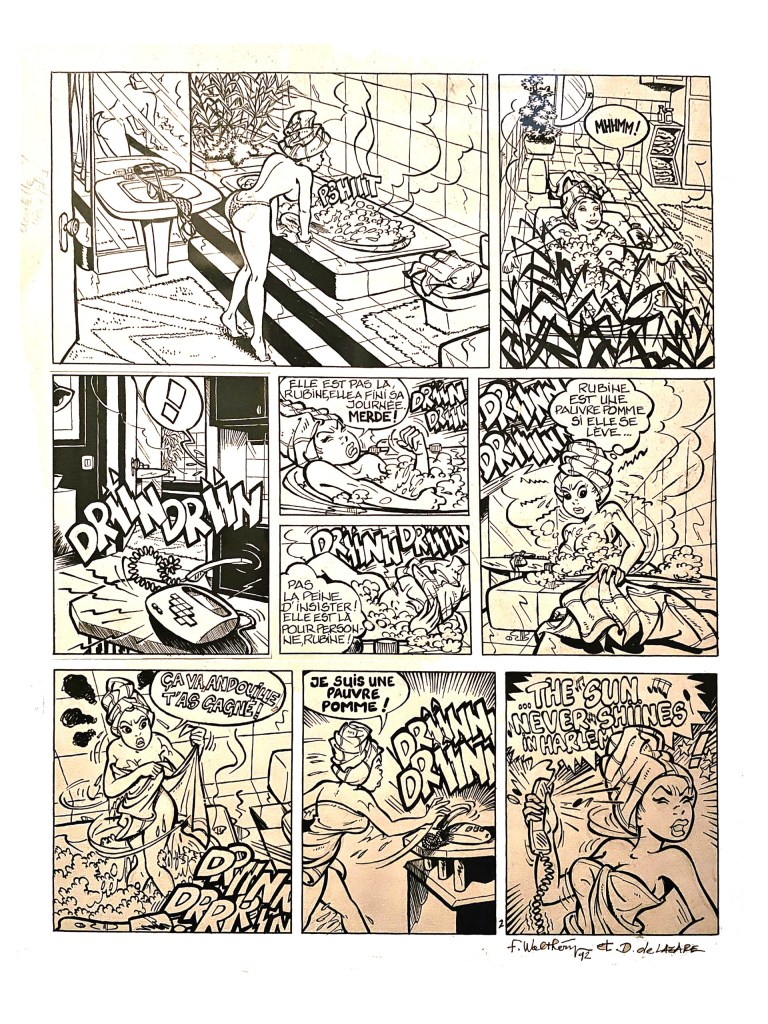 Le projet Rubine, en son temps, avait intéressé une maison de BD bruxelloise, et Rubine devint une inspectrice de police française qui faisait croire à son père, gardien de la paix, qu’elle tenait une boutique de jouets. Le projet n’aboutit pas car la maison – qui éprouvait du mal à se positionner – choisit bientôt d’autres horizons. Revenons donc au chapitre Lombard, quand Yves découvrit une page 0 dessinée par Dragan de Lazare et Walthéry, il n’y eut plus qu’à définir un planning de fourniture de pages. Quant à la Rubine des 90th, elle est née à la suite d’une proposition éditoriale des éditions du Tiroir.