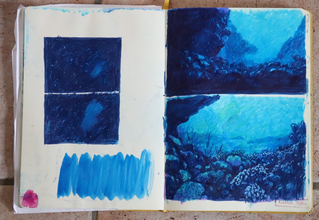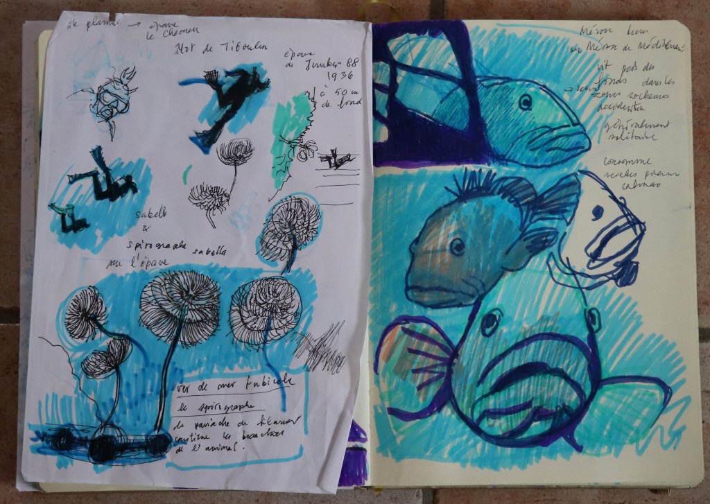 Naturellement, sous l’eau, impossible de croquer ce qu’on voit avec du papier et des crayons, non ? Vous avez dû vous en passer, trouver d’autres sources et manières de ressentir les choses, autrement que par le crayon ?