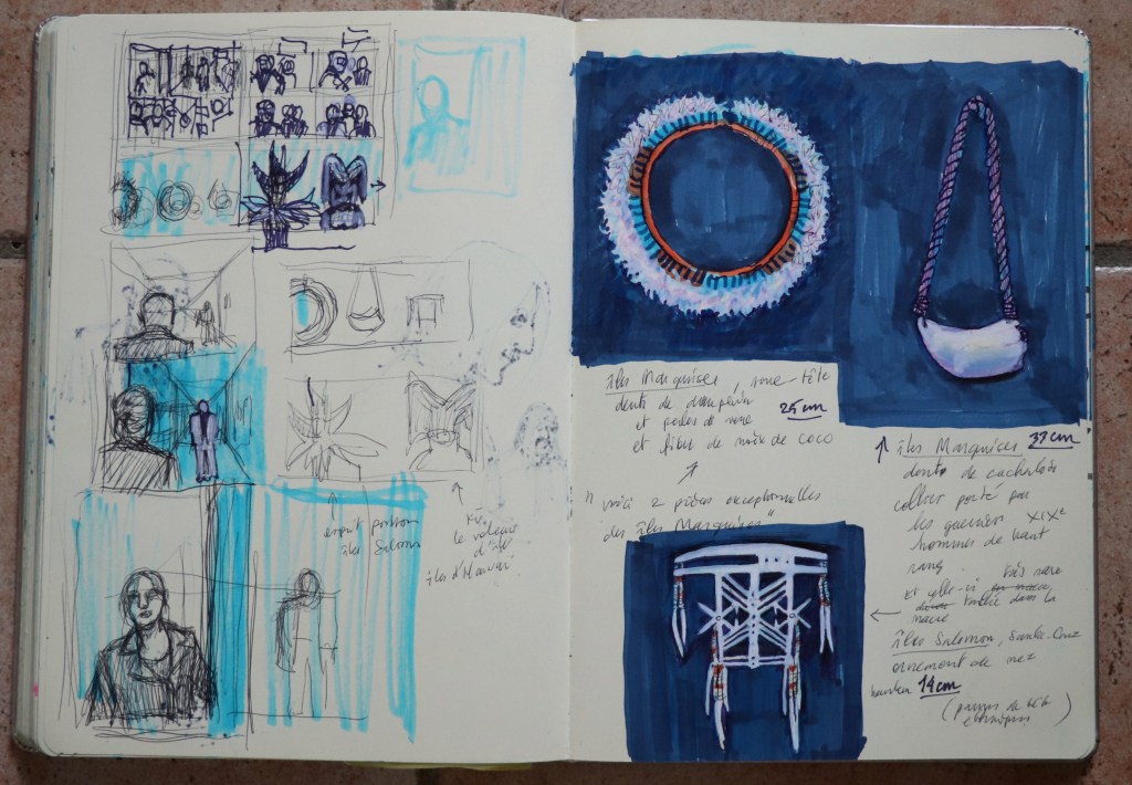 Non pas aujourd’hui, je l’avais quand je voyageais beaucoup à l’étranger. Je variais entre grands carnets pour le travail pictural destinés aux moments longs de contemplation et un petit carnet de poche pour les brèves du quotidien (travail au trait).
