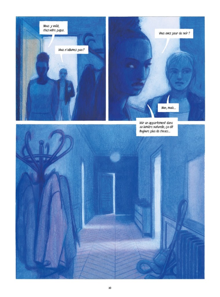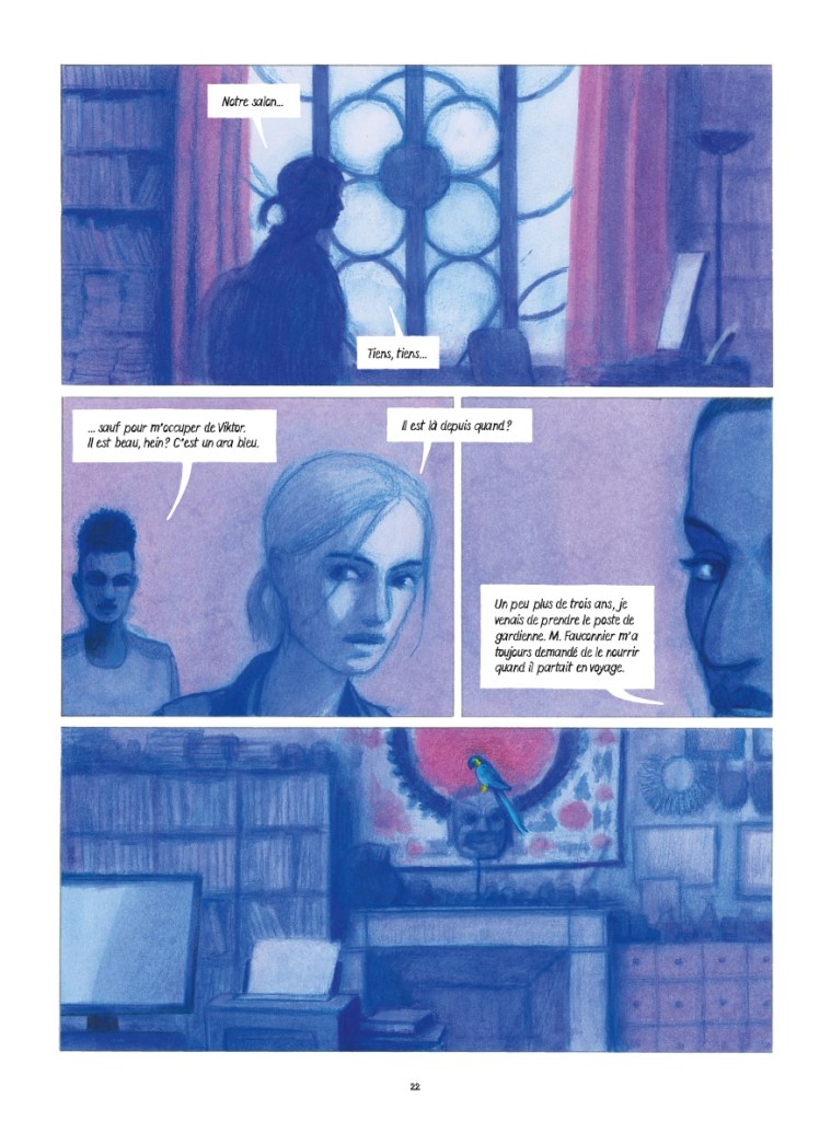Gaétan, à chacun de vos romans graphiques, vous nous emmenez ailleurs, dans d’autres décors, mais toujours avec cette atmosphère bleue. Pourquoi avoir opté pour cette couleur ? Comment a-t-elle conditionné votre palette ?