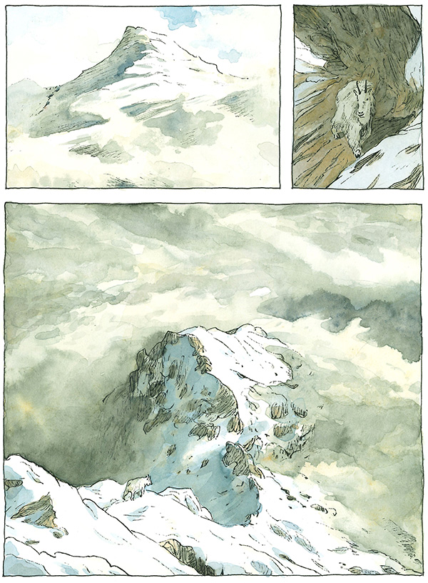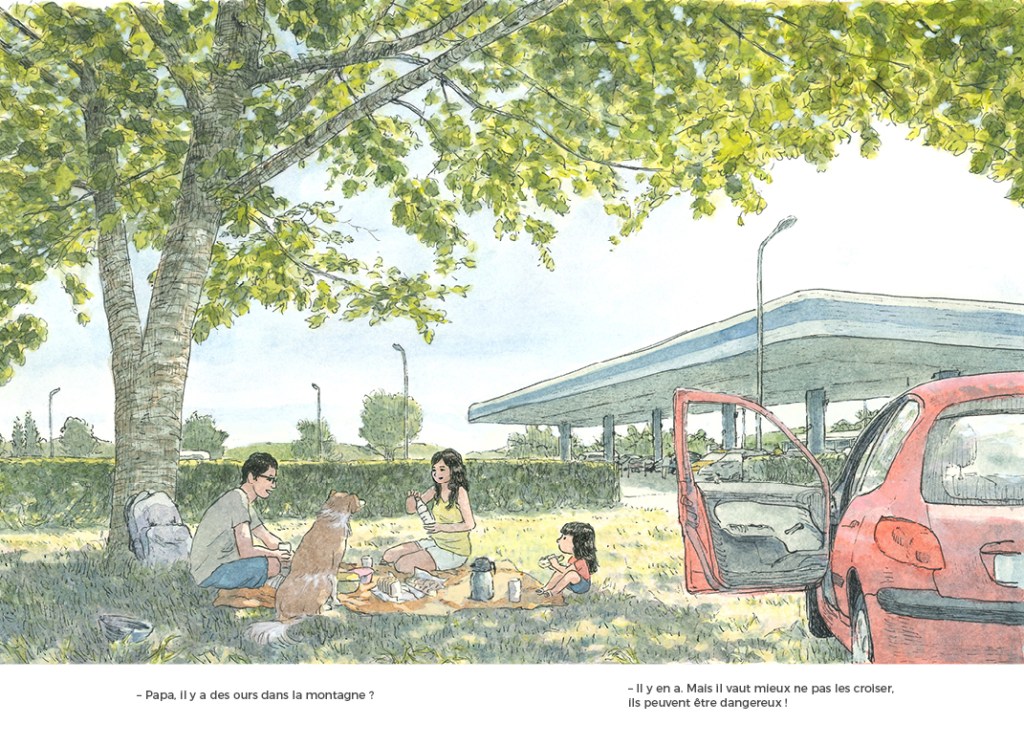 Album illustré plus que BD, Montre-toi montagne! cultive lui aussi des similitudes avec les deux autres de ce trio. L’esprit de famille, l’ode à la montagne et à ses conditions changeantes. Être tout petit face à l’immensité de la nature et à l’impatience de la découvrir. Et impuissant. Même à l’heure des autoroutes.