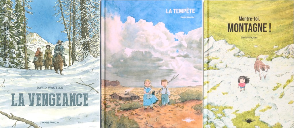 Une fois n’est pas coutume, triple-chronique et topic consacré à un seul auteur, belge: David Wautier. Je l’ai rencontré via les pages publiées par les Éditions Anspach, dans un western enneigé et jusqu’à bout de souffle, avant de constater que cet auteur aime aussi se consacrer à faire rêver et cogiter les enfants, le tout public, aux Éditions Le Diplodocus. Trois albums et des choses en commun: la neige, le western, la puissance des éléments sur lesquels l’humain n’a pas de prise. Inspirez, expirez, sacrée découverte que cet artiste soufflant.
