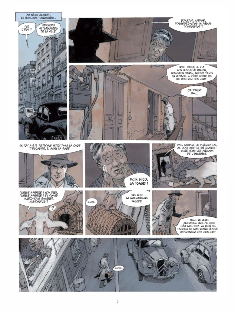Chapitré selon les lieux et les dates qui permettent de mieux assembler les pièces du puzzle, ce récit est raconté en faux suspense, choral et à rebours. Il est magnifiquement dessiné par Michel Chevereau, sur la terre comme dans les airs, tandis que Jack Manini est malin pour faire se télescoper différents sujets et pistes. Pourtant, si l’intrigue est originale et surprenante, que tout le monde se retrouve pris au piège même ceux qui pensaient s’en sortir, cet album manque de surprises et, par ses brefs chapitres, installe une monotonie plus que du rythme, une mécanique plus qu’une vie. J’aurais aimé, je crois, un peu plus de psychologie de tous ces personnages emmenés en voyage, pouvoir le vivre avec eux. Au lieu de ça, le scénario survole l’histoire humaine qu’il aurait pu raconter.