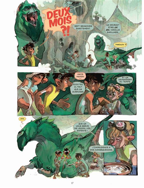 Chance pour Amelia, ses hôtes ont comme elle la passion des airs, de tutoyer les nuages, au-dessus des arbres. Amelia donne l’impulsion, les frangins mettent leurs cerveaux à ébullition pour tenter de réparer le dirigeable avec lequel notre héroïne s’est crashée. Mais le temps presse, la jungle est vorace et pourrait vite engloutir le gros vaisseau.