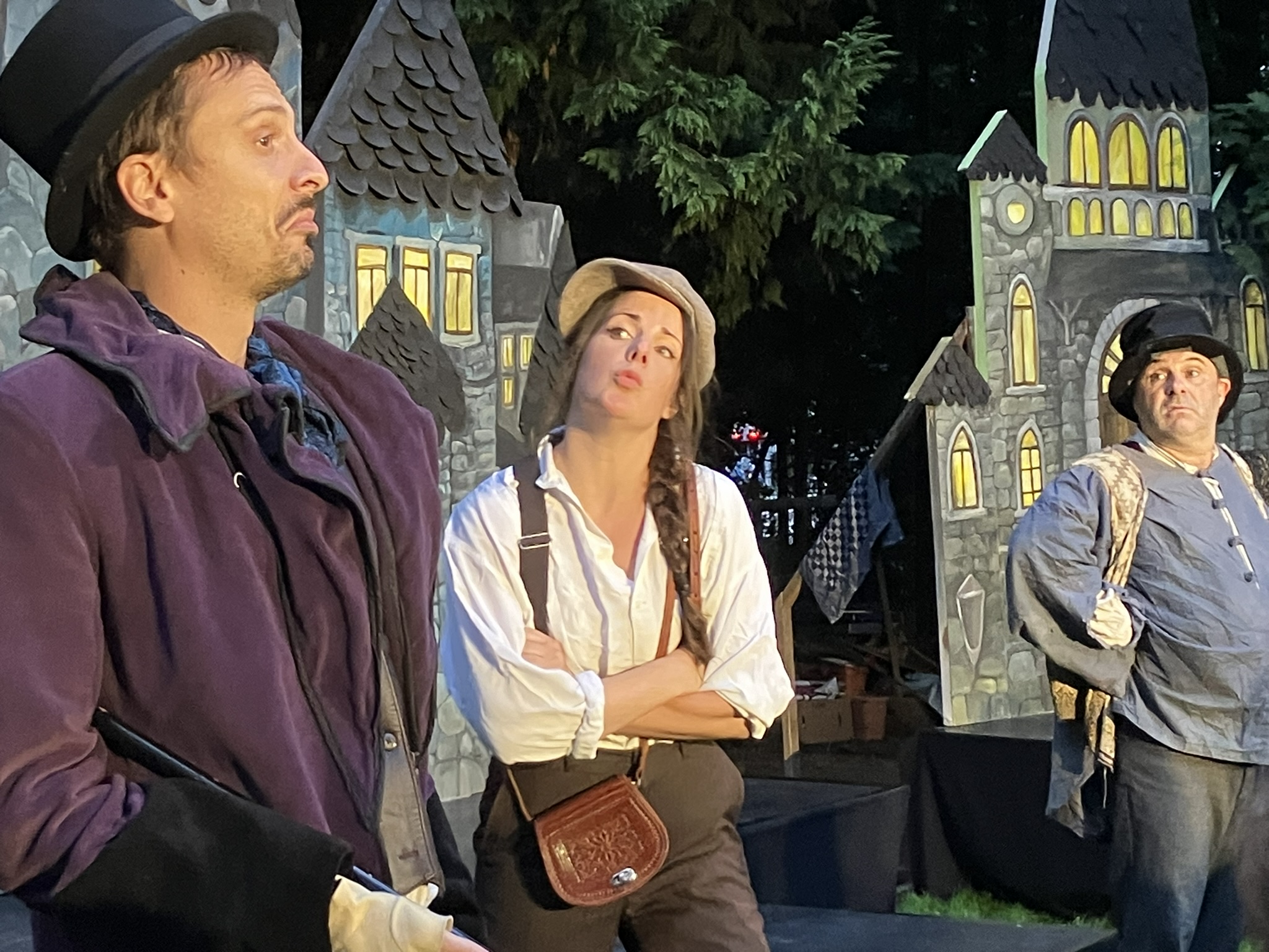 Une soirée qui ne fut pas trop entachée par une météo plutôt capricieuse, car seules quelques fines gouttes de pluie ont un cours moment partiellement arrosé les comédiens et le public, n’empêchant nullement le bon déroulement de la pièce.