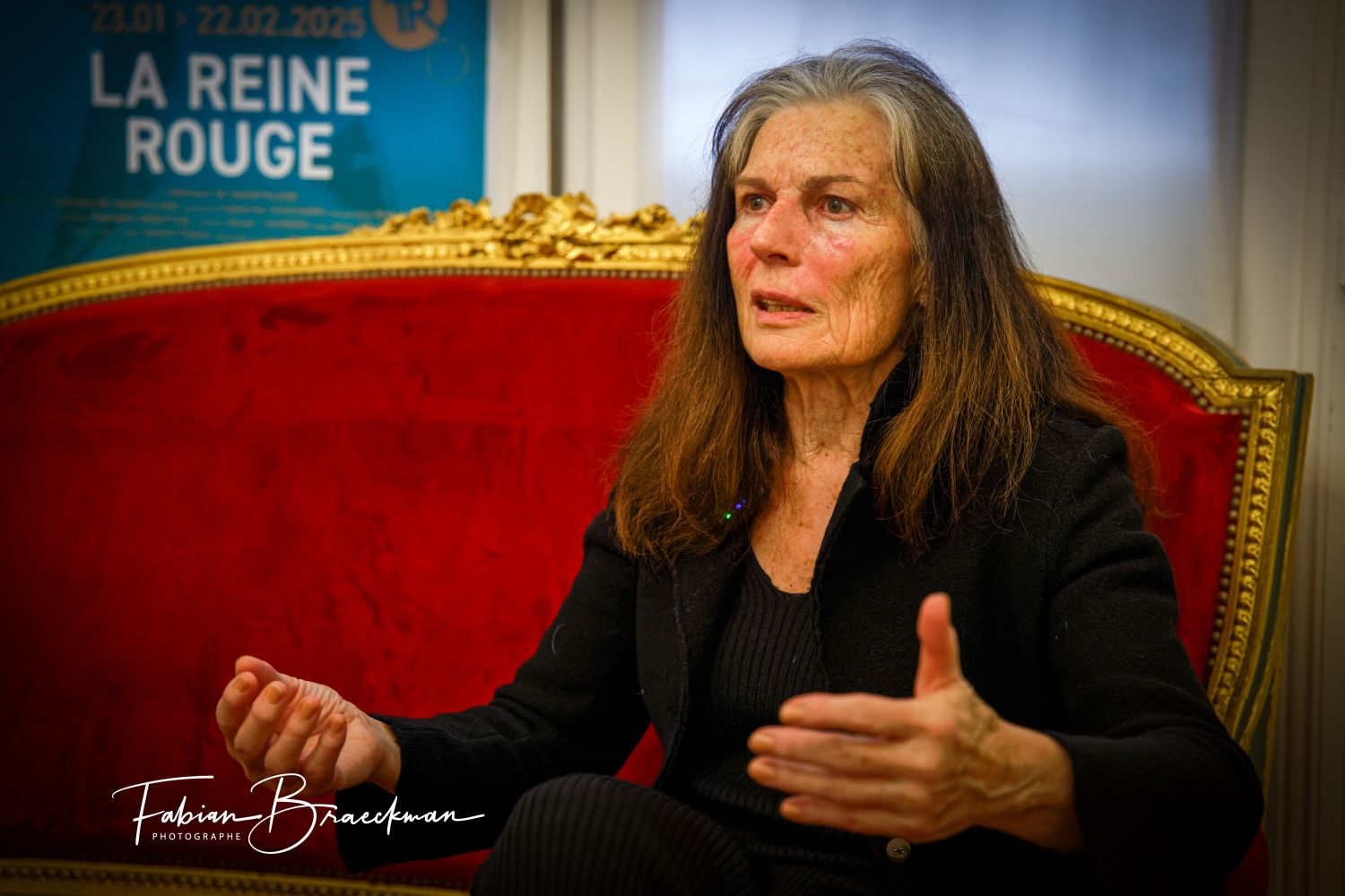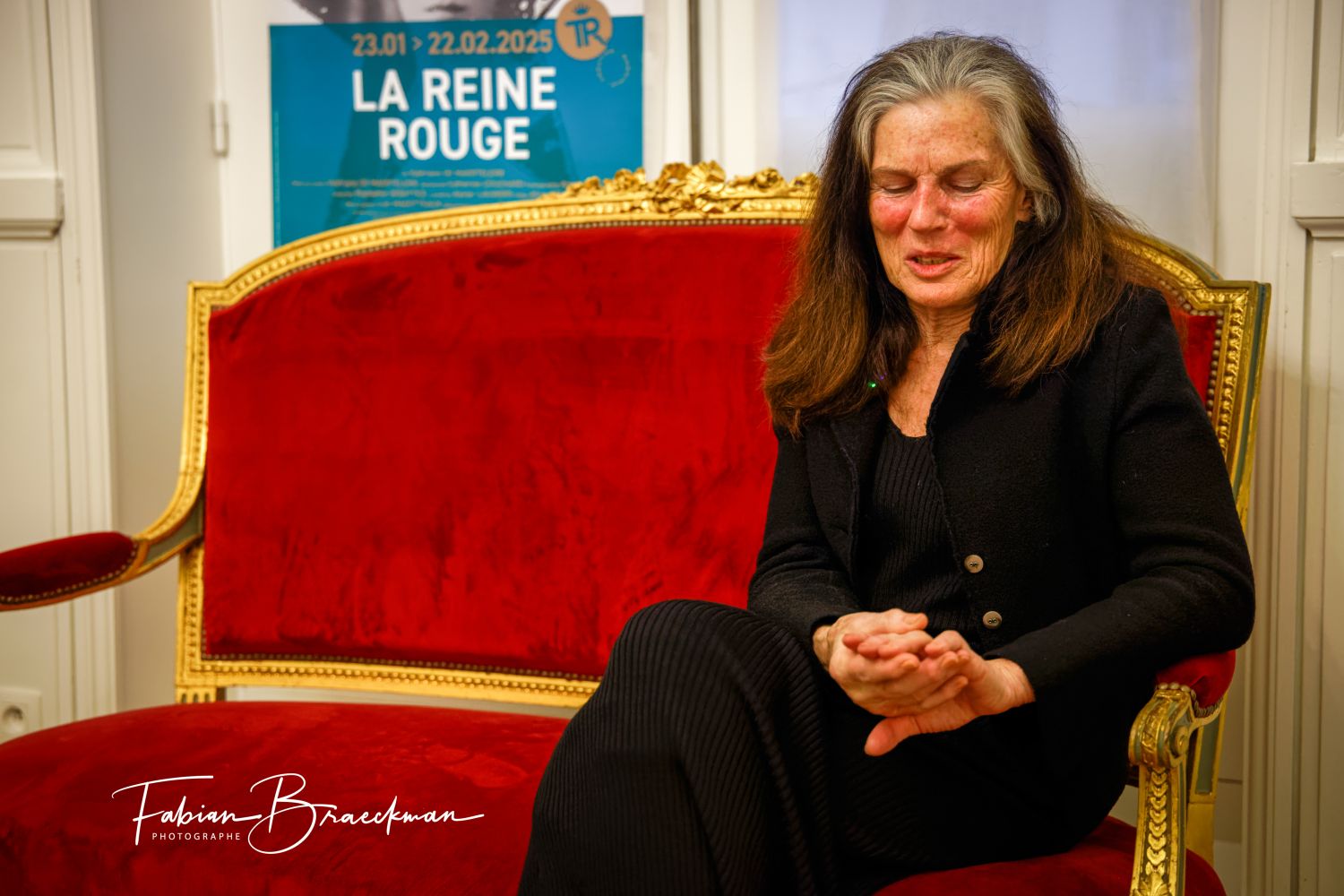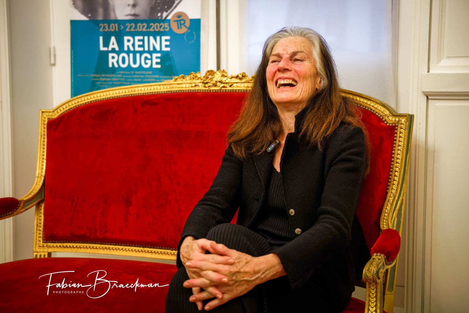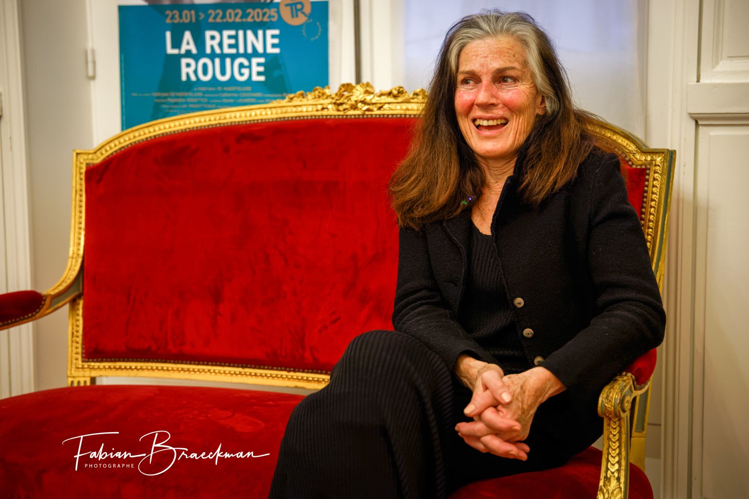 Celle qui est certainement une des comédiennes de théâtre les plus respectées par ses pairs et hautement appréciée par son public et qui fut également récompensée d’un Magritte du cinéma en 2022 pour « Une vie démente » d’Ann Sirot, a répondu avec franchise et spontanéité à mes questions confortablement installée dans un divan rouge, la couleur de la reine qu’elle interprète sur les planches.