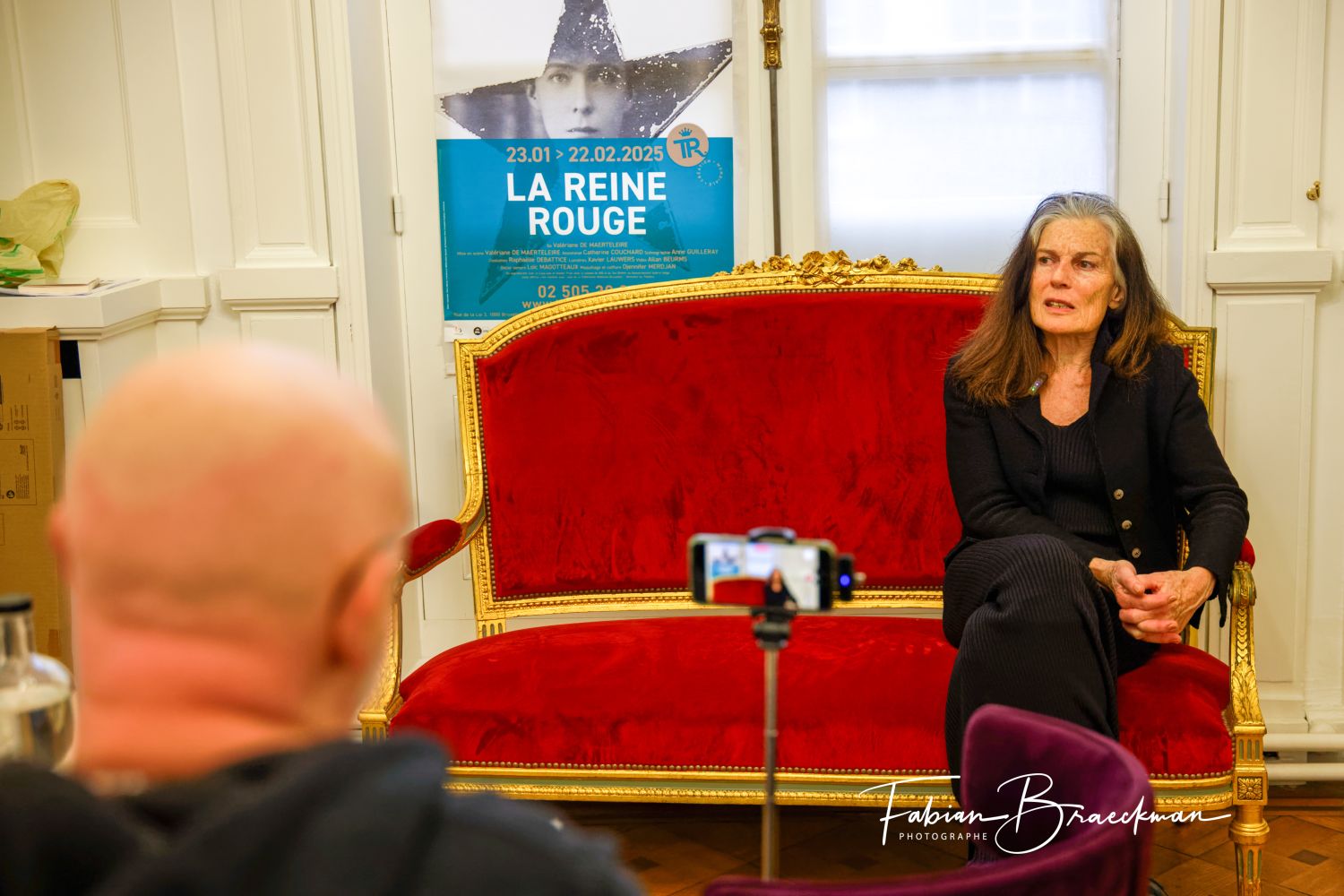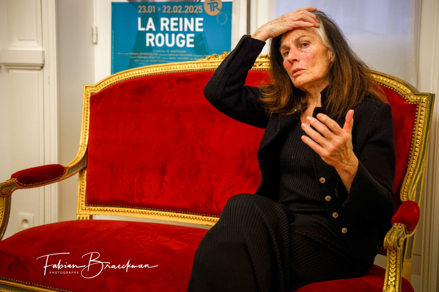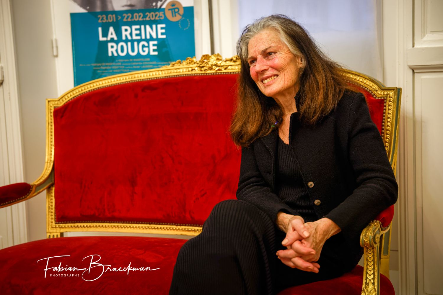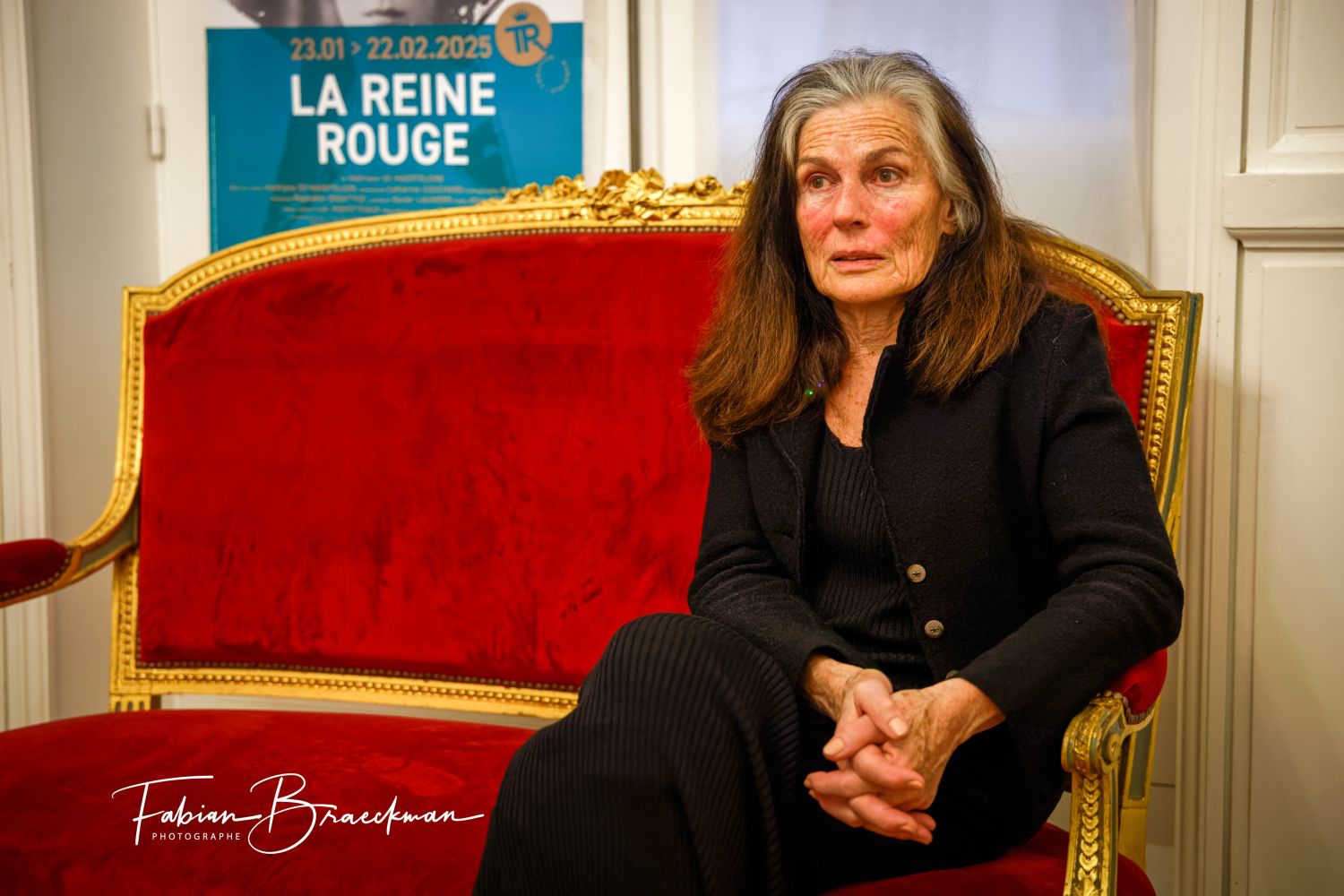 Celle qui est certainement une des comédiennes de théâtre les plus respectées par ses pairs et hautement appréciée par son public et qui fut également récompensée d’un Magritte du cinéma en 2022 pour « Une vie démente » d’Ann Sirot, a répondu avec franchise et spontanéité à mes questions confortablement installée dans un divan rouge, la couleur de la reine qu’elle interprète sur les planches.