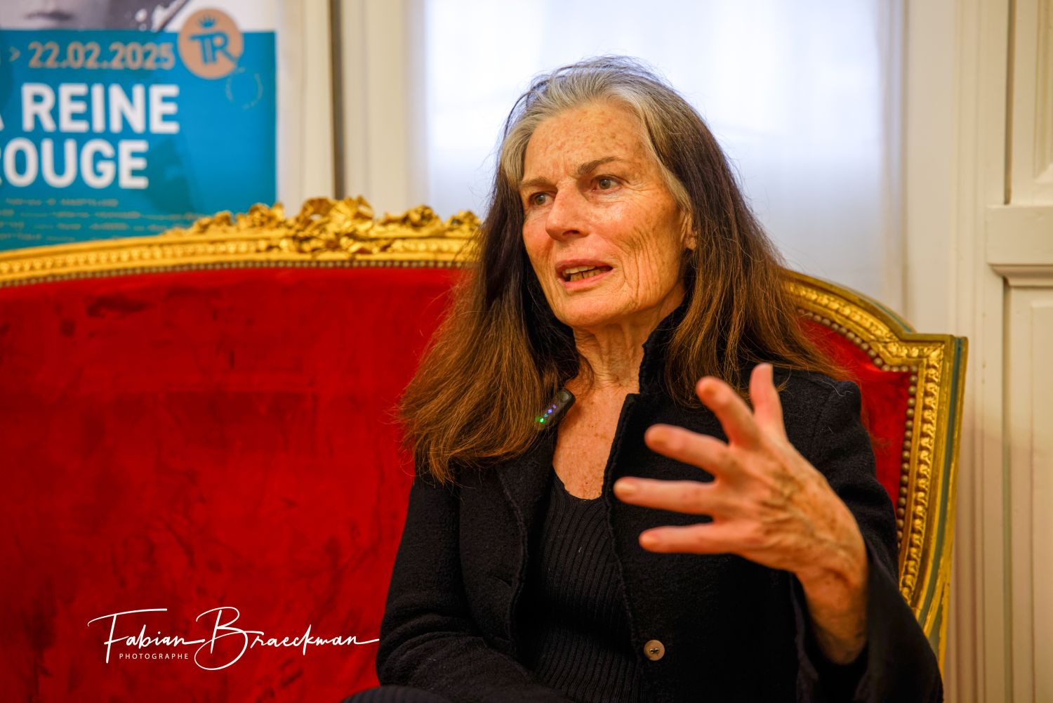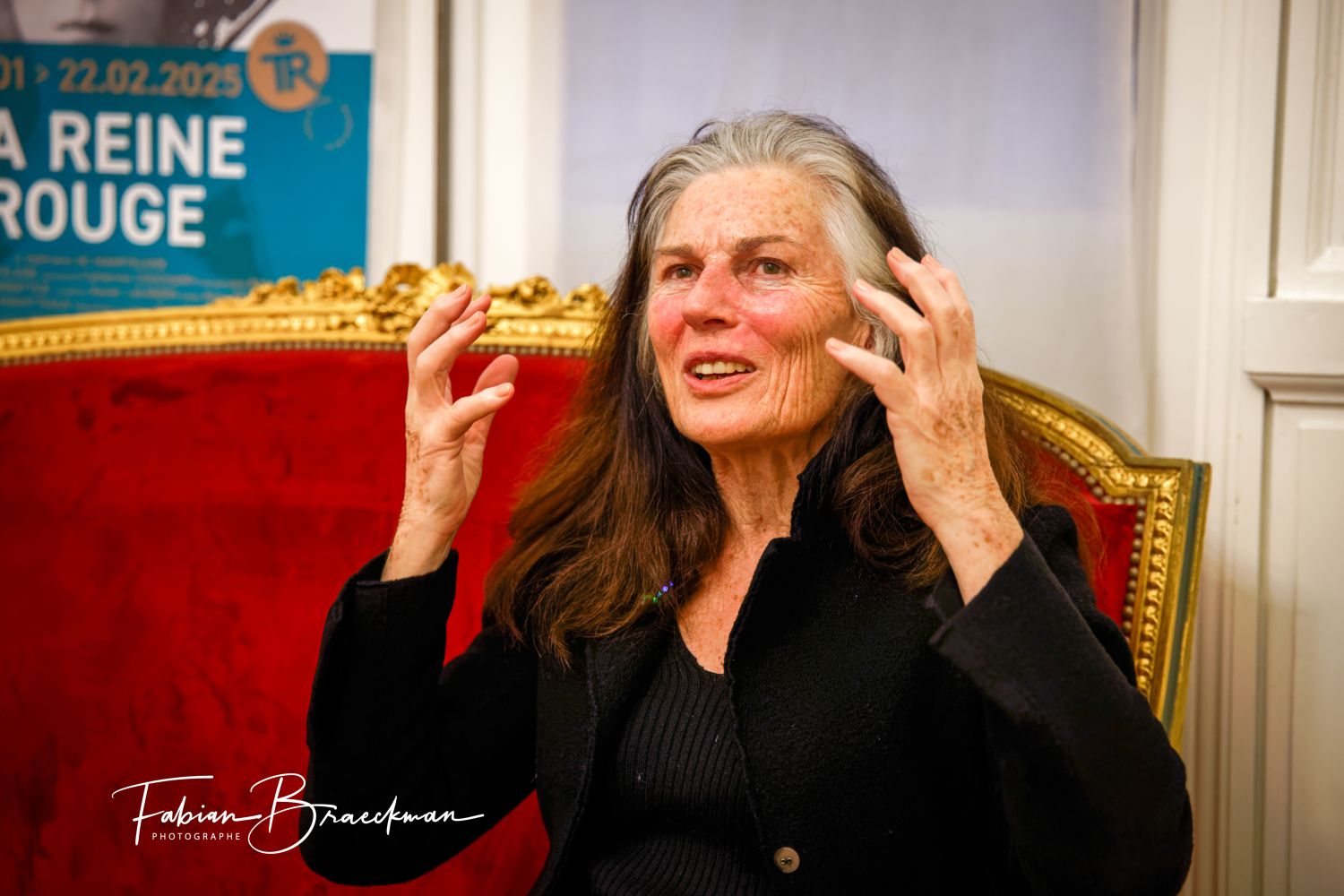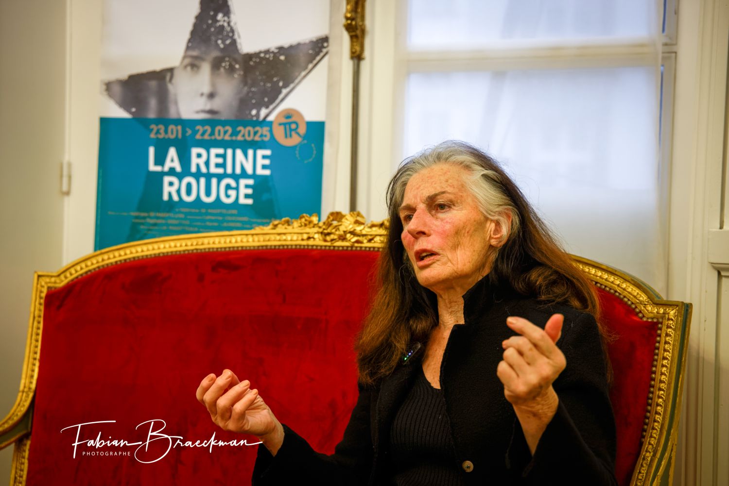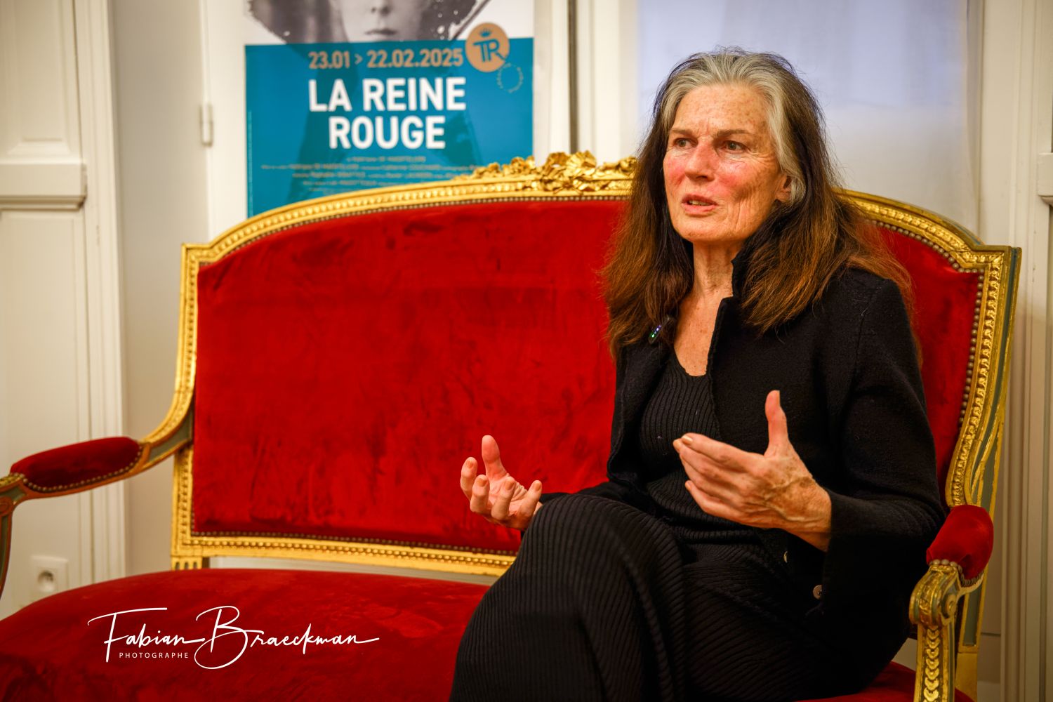 Celle qui est certainement une des comédiennes de théâtre les plus respectées par ses pairs et hautement appréciée par son public et qui fut également récompensée d’un Magritte du cinéma en 2022 pour « Une vie démente » d’Ann Sirot, a répondu avec franchise et spontanéité à mes questions confortablement installée dans un divan rouge, la couleur de la reine qu’elle interprète sur les planches.