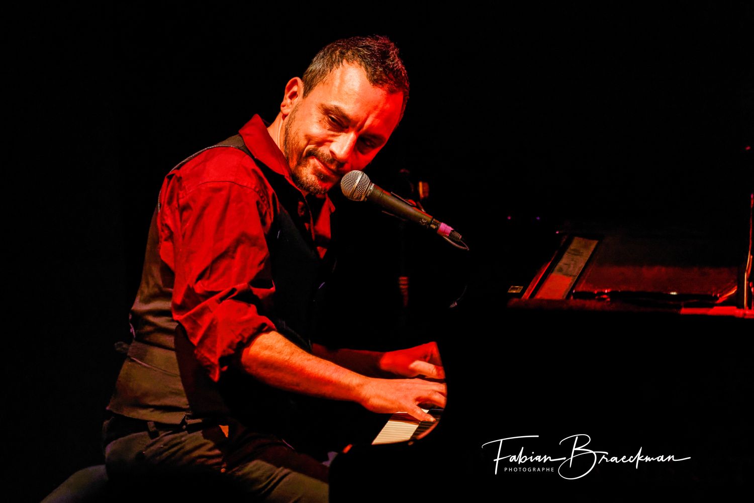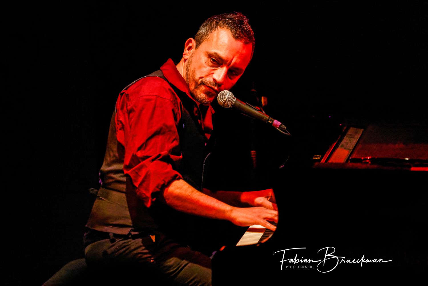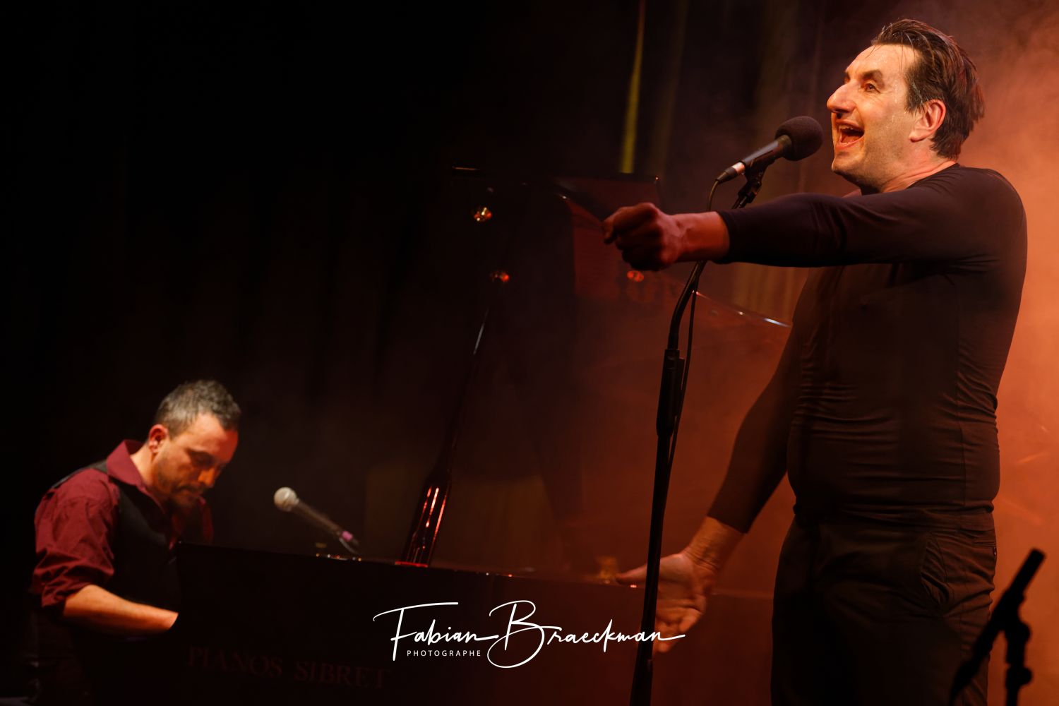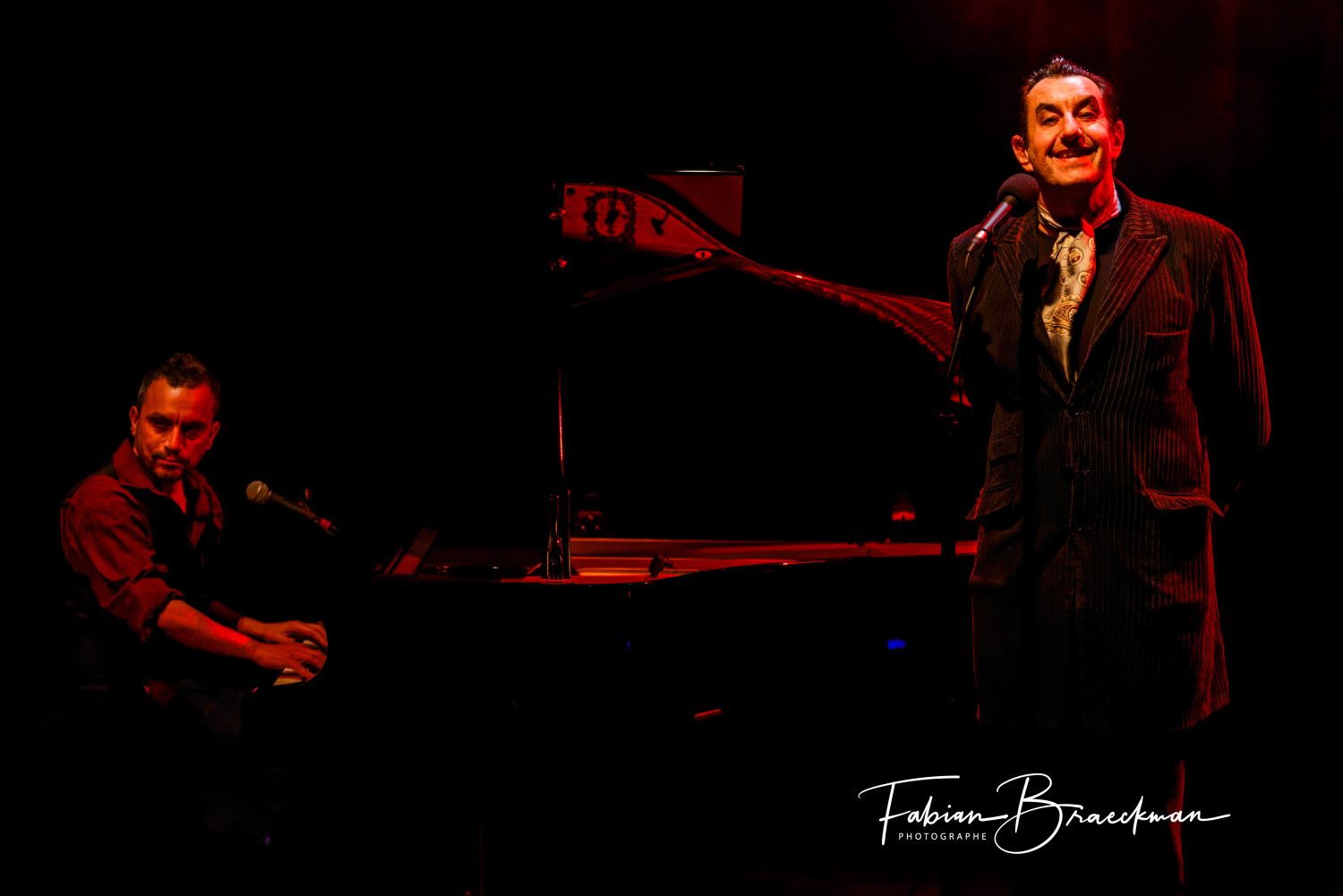 Parker s’installe au piano, et lentement Yanowski s’avance vers le micro.. A deux ils ouvrent La Boîte de Pandore, du nom de leur dernier album, et c’est parti pour nonante minutes d’un voyage dans les profondeurs de nos âmes.