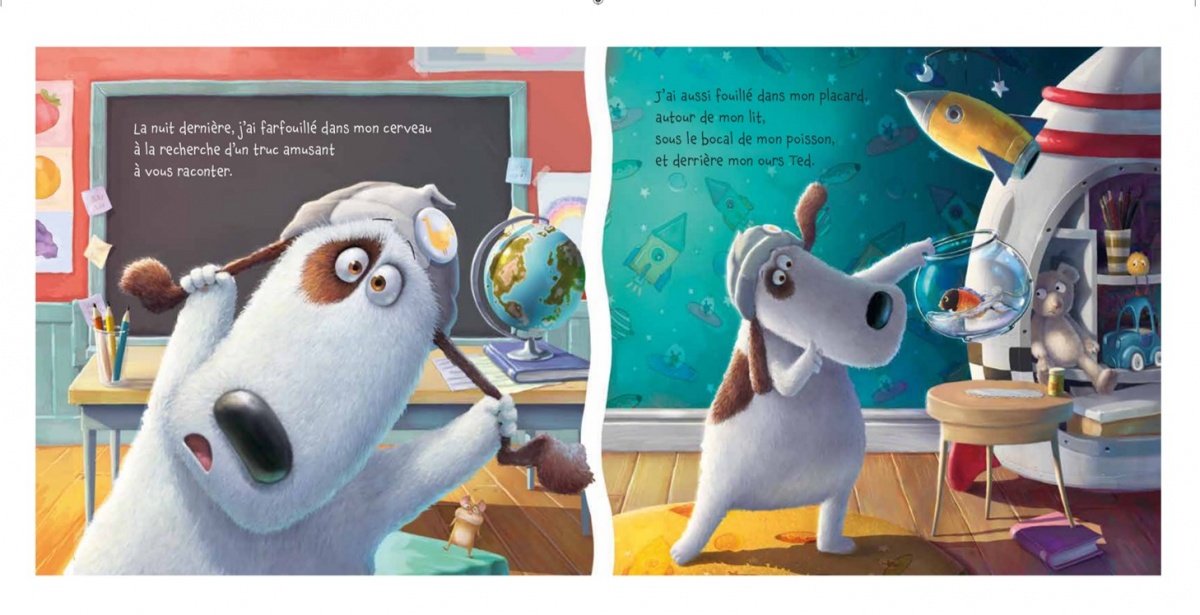 Résumé de Max et le bidule de l’espace par Nathan : Oh là là, catastrophe ! Max le Chien n’a aucune idée de ce qu’il va raconter demain pour son Grand Exposé à l’école ! Quand soudain, une petite fusée traverse la fenêtre de sa chambre et s’écrase sur son placard. À son bord, un drôle de bidule bleu qui l’invite à le suivre dans l’espace…