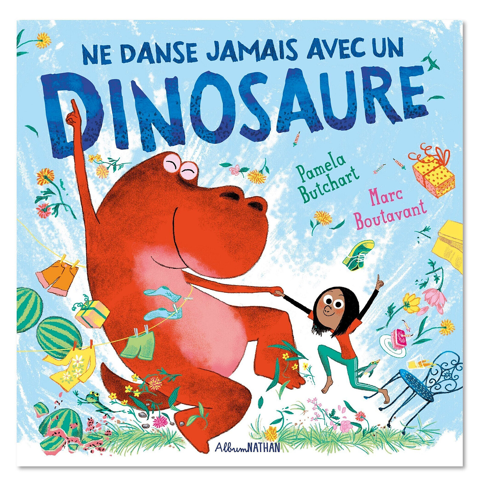 Résumé de Ne danse jamais avec un dinosaure par Nathan : Perle adore danser. Mais quand elle danse, ça fait BADAM ! BOUM ! PLOF ! BAM ! Ça n’est pas du goût de tout le monde. -On dirait que tu danses avec un dinosaure ! s’exclame sa professeure, Mlle Pointedepied. -On ne danse JAMAIS avec un dino. Ils sont bien trop lourdauds, patauds, brutes et rustauds. Et pourtant…