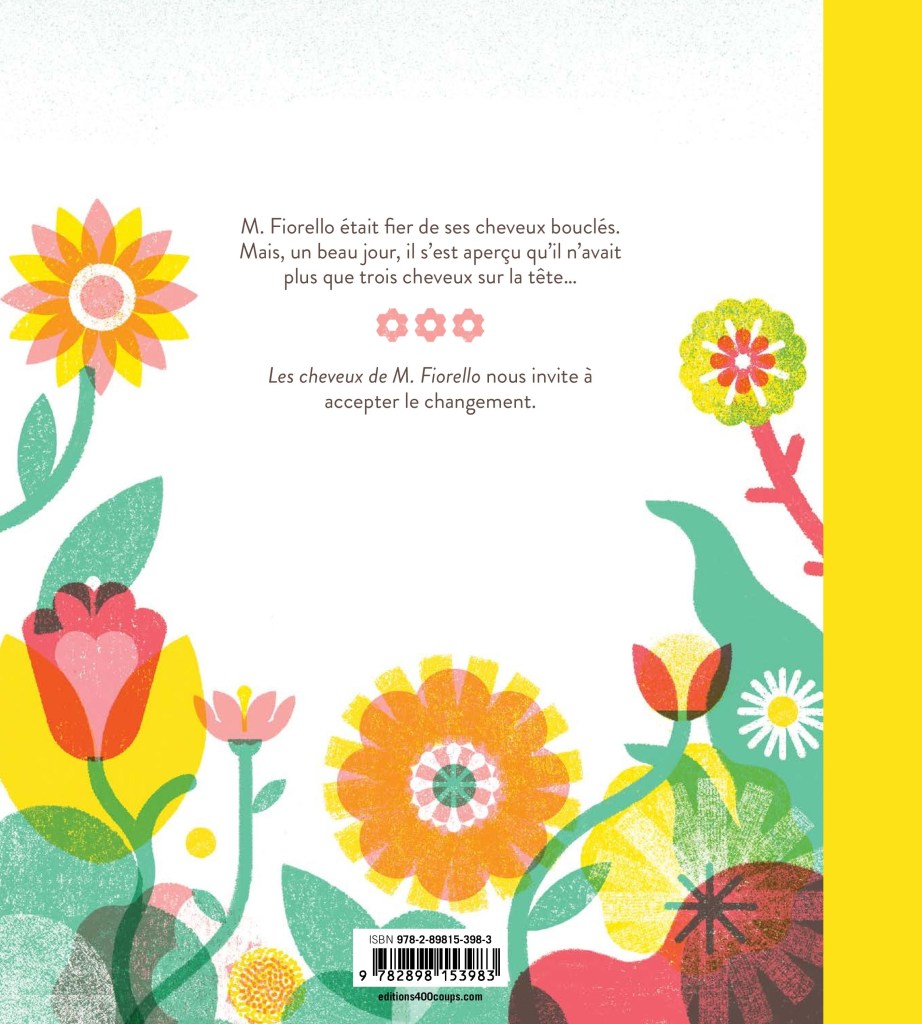 Résumé de Les cheveux de M. Fiorello par Les 400 Coups : Lorsque M. Fiorello commence à perdre ses cheveux bouclés dont il est si fier, il est complètement bouleversé. Surtout lorsqu’il réalise que trois indomptables résistent et attirent l’oeil sur son crâne maintenant chauve. Il tentera alors tout pour s’en débarrasser, sans succès. Mais peut-être est-ce exactement ce dont M. Fiorello a besoin pour ouvrir ses horizons et laisser place à de nouvelles pousses… Et s’il suffisait de lâcher prise pour mieux s’épanouir?