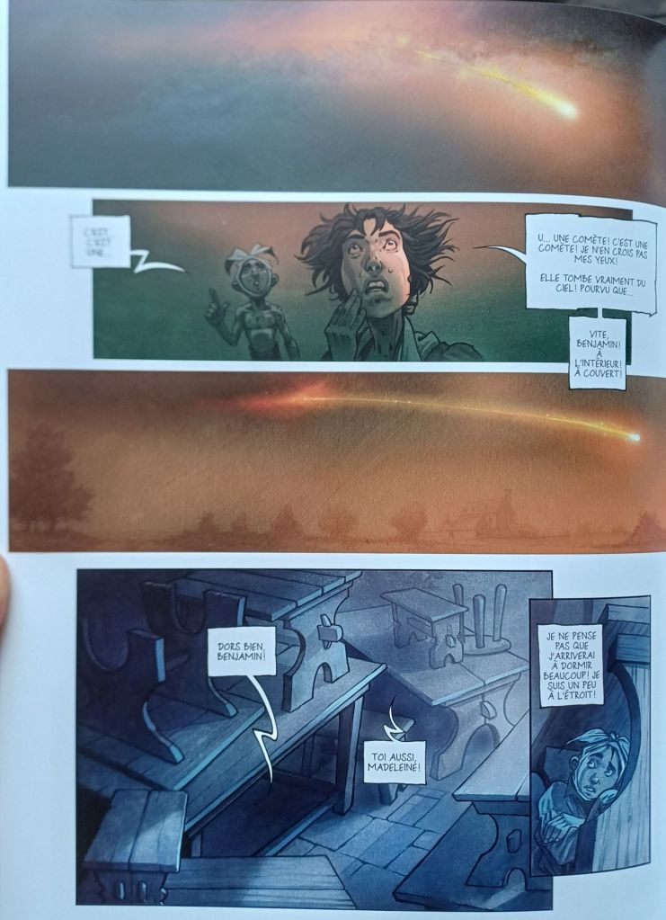 Dans ces années 1780, quelque part au nord de l’Europe, le travail est rude, d’une vie, mais porte peu à peu ses fruits. Petit à petit, l’oiseau fait son nid, dit-on, et le magot grandit. L’auberge isolée (comme on peut en trouver au milieu des déserts western) est par conséquent bien fréquentée, notamment par des gens de standing, de l’armée qui n’ont d’autre choix que de se mêler à la plèbe. Et ils le font d’ailleurs sentir. Alors, volontairement ou parce qu’il a la tête en l’air, ailleurs, Benjamin ramène la leur sur terre, quitte à écraser un pied sous une lourde valise.