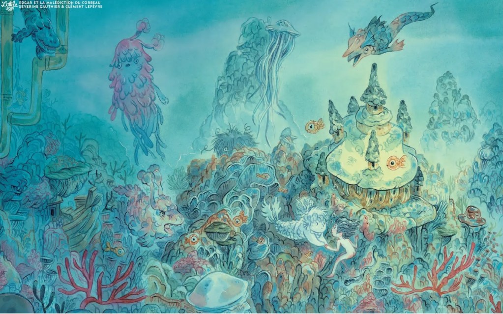 Encore une fois, le charme fou opère: celui des illustrations de Clément Lefevre, bourrées d’idées graphiques, fortes, et celui de l’histoire que Séverine Gauthier fait rimer à la force des amitiés, entre la terre et l’éther. Avec des livres aussi beaux, aussi riches, les corbeaux n’ont qu’à bien se tenir. Nevermore, ils ne feront la loi chez Edgar.