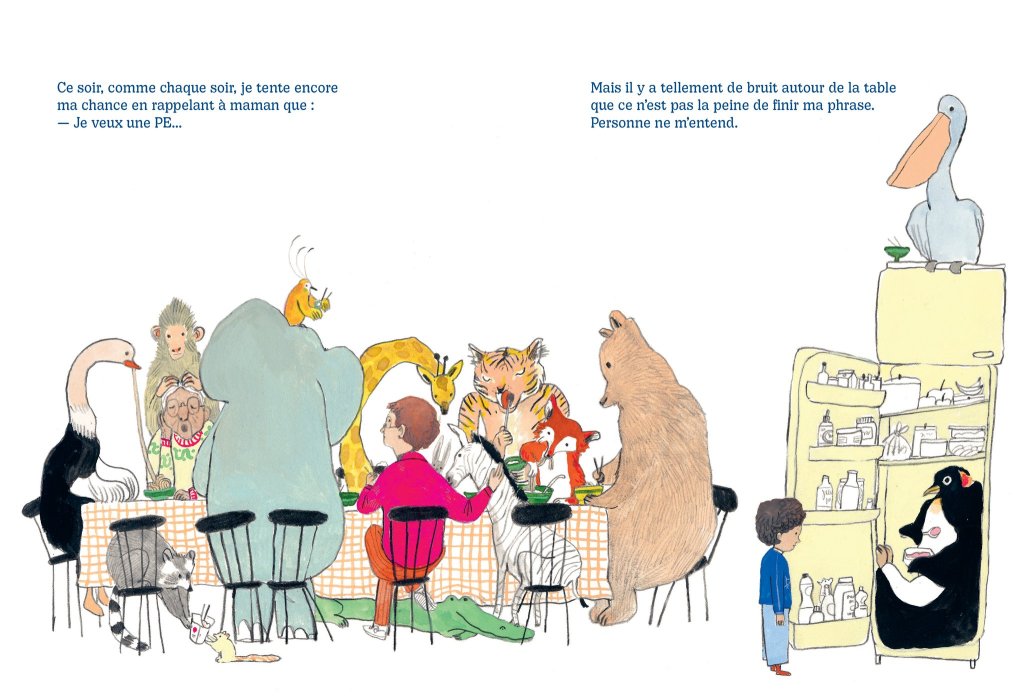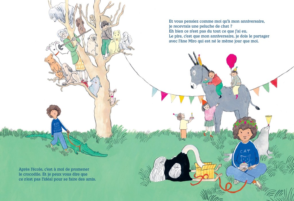 L’idée est belle mais vivre en tant qu’enfant entre les poils, les plumes, les écailles de ce petit monde, ce n’est pas une vie. Lou doit se débrouiller tout seul et faire le deuil de son rêve, juste un doudou chat qui n’est là que pour lui faire des câlins sans besoin d’être nourri, materné.