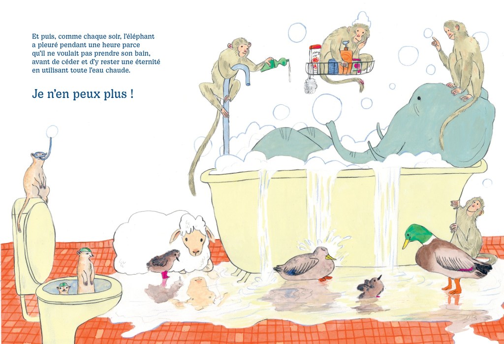 Promener les crocodiles, avec toutes les difficultés sociales que ça comporte. Faire couler le bain de l’éléphant. Laisser de la place dans le lit pour le renard. Accepter d’être réveillé la nuit par les animaux nocturnes qui forcément ne dorment pas. Partager son anniversaire avec un âne. Et sa chambre avec l’ours, le zèbre, les moutons, les chauves-souris, les ratons et consorts. Et, par-dessus tout, ne plus être entendu dans cet océan de cris.