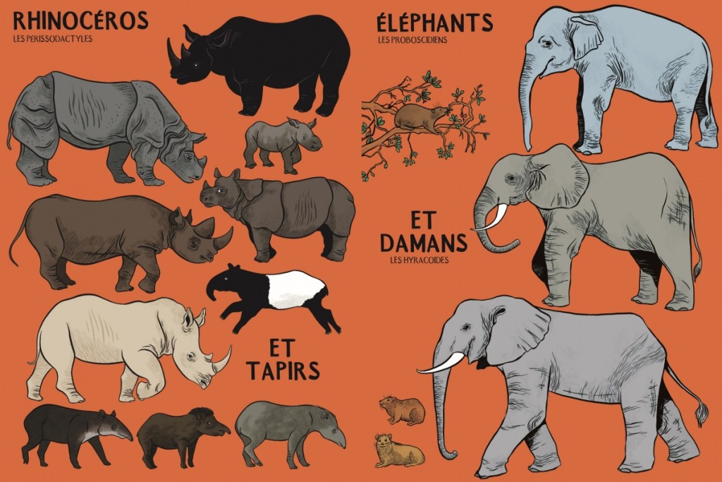 Vos enfants et vous-mêmes aimez les animaux? Vous allez être servis. Beaucoup beaucoup d’animaux, c’est le dernier pari fou que s’est lancé Marlène Normand (qui avait déjà composé une grande ligne du temps Montessori sur l’apparition de la vie sur Terre). En 41 planches, l’illustratrice nous fait découvrir 2500 animaux légendés et classés par familles. Une encyclopédie visuelle de la faune mondiale, parfois bizarre et insoupçonnée.