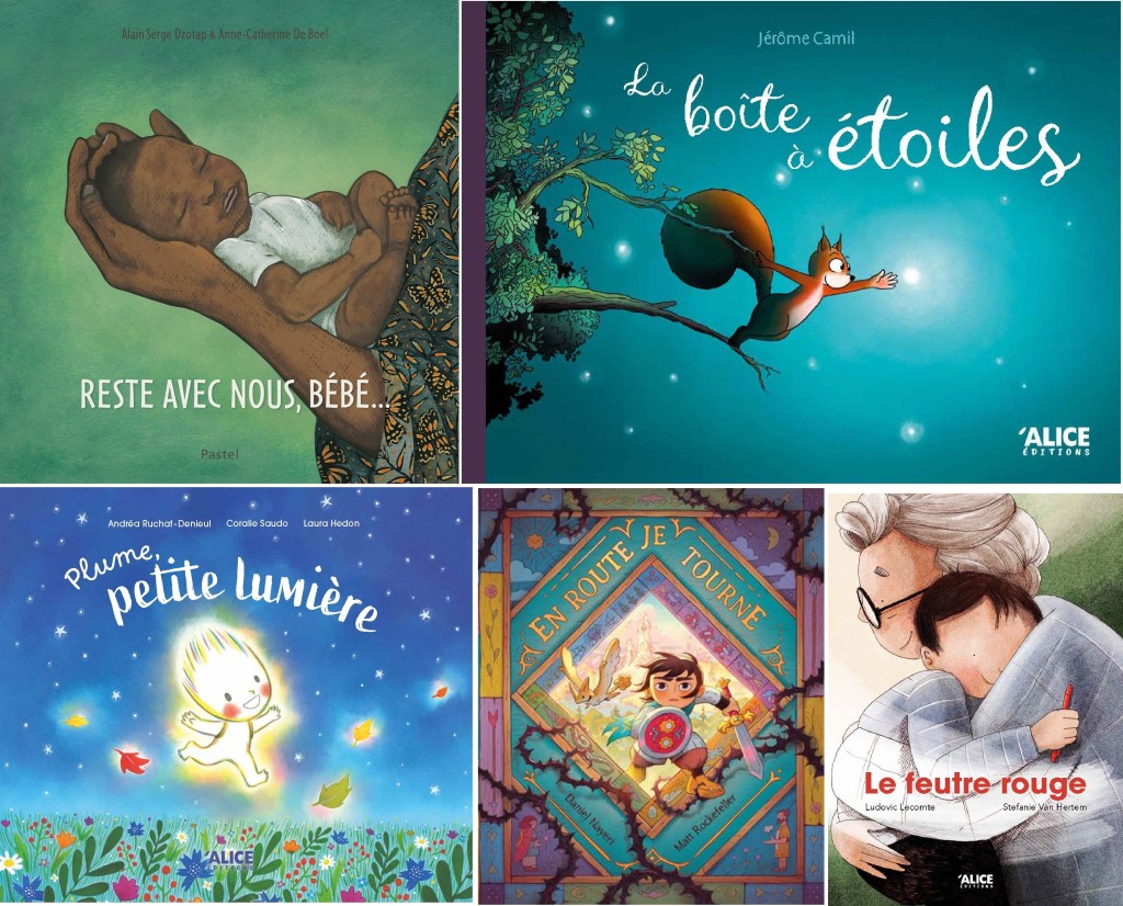 La vie, la mort, comment ça fonctionne? Les enfants ne sont pas dupes, percevant très vite nos maladresses et silences volontaires sur ces sujets. Ça les travaille très vite mais ils sont aussi beaucoup plus décomplexés que pas mal de grands qui en ont fait un tabou. Pas les éditeurs et les auteurs, artistes jeunesse qui s’emparent tous azimuts de ces questions, entre ceux qui partent et ceux qui restent, et les connexions. Petite sélection d’albums jeunesse parus ces dernières semaines: En route je tourne (de Daniel Nayari et Matt Rockefeller), Le Feutre Rouge (de Ludovic Lecomte et Stefanie Van Hertem), La boîte à étoiles (de Jérôme Camil), Plume, petite lumière (d’André Ruchat-Dunieul, Coralie Saudo et Laura Hedon) et Reste avec nous, Bébé… (d’Alain Serge Dzotap & Anne-Catherine De Boel). Ayez les mouchois à portée de main, mais aussi des bisous, des câlins.