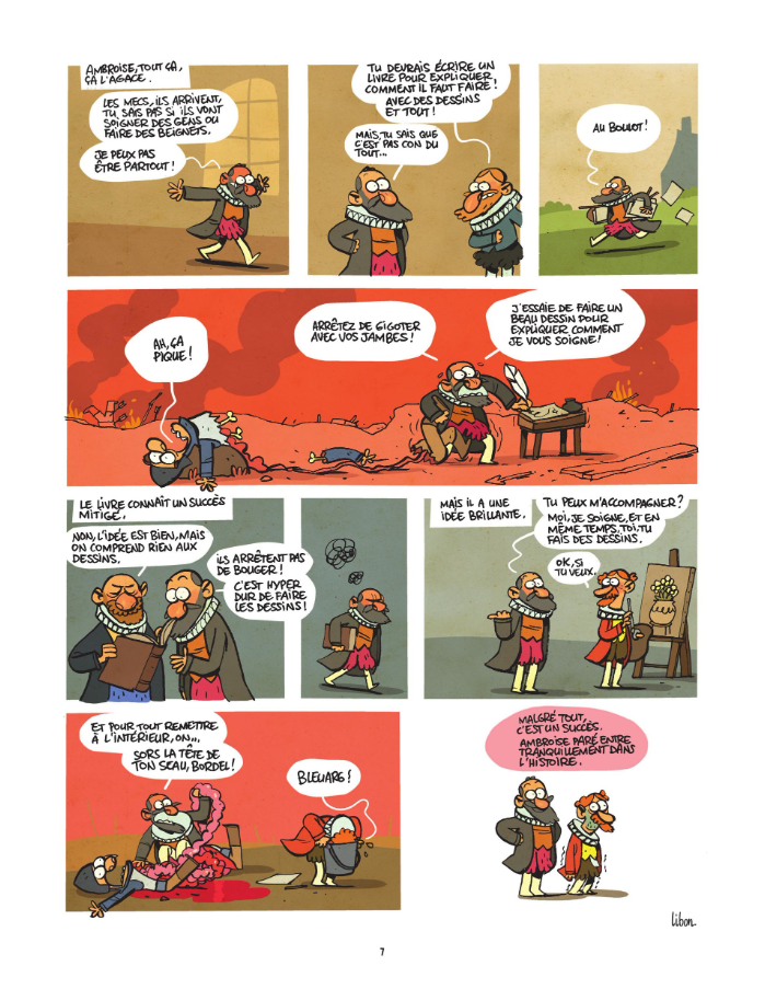 En théorie, tout se passe toujours bien, mais en pratique parodique? Délaissant pour un (saut dans le) temps ses Cavaliers de l’Apocadispe et alors qu’il avait goûté aux joies (et délires) de la reprise d’un personnage célèbre, Spirou, Libon a, pour Fluide Glacial, adapté à son esprit farfelu les plus grandes prouesses du monde scientifique et leurs auteurs déconneurs.