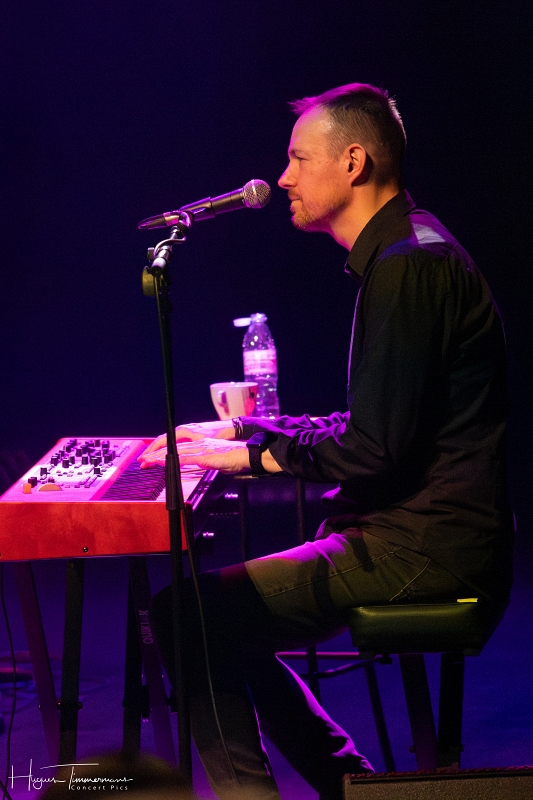Soutenu par ses quatre musiciens talentueux et un public bienveillant totalement dévoué à sa cause qui l’a porté durant tout le concert et lui distillait des encouragements ( une spectatrice lui proposant même de lui amener des pastilles pour la gorge en bord de scène), et avec l’aide d’une tisane gingembre citron que lui a apporté le producteur du spectacle, le chanteur a réussi bien heureusement à retrouver une bonne partie de ses capacités vocales au fil du set.