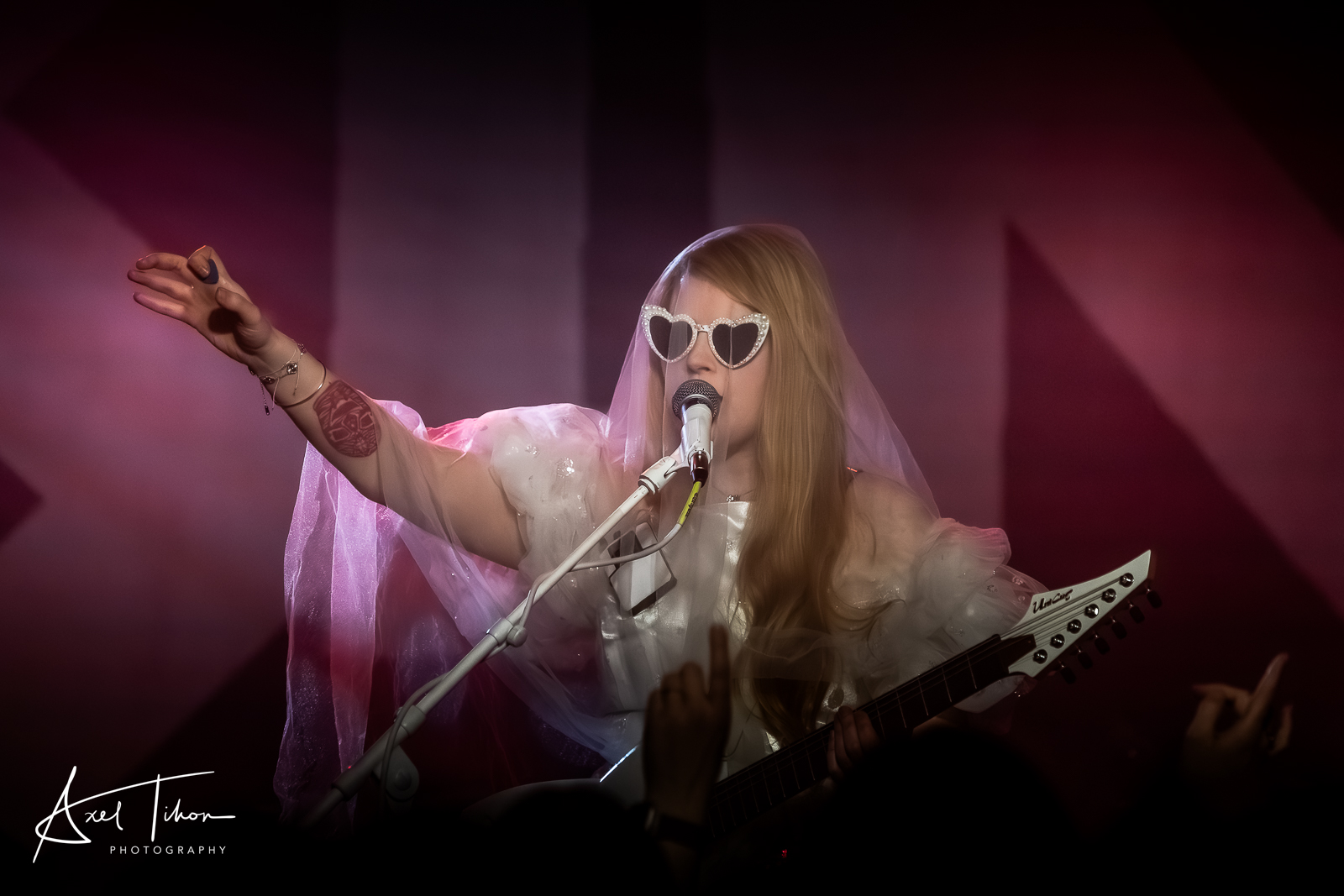Robe de princesse. Lunettes en forme de cœur. Une apparition presque naïve, borderline kitsch, qui semble désamorcer d’emblée toute promesse de violence. Pendant une fraction de seconde, le doute s’installe : est-ce que tout ça ne serait pas qu’un jeu d’esthétique, un vernis pop posé sur une intensité annoncée ?