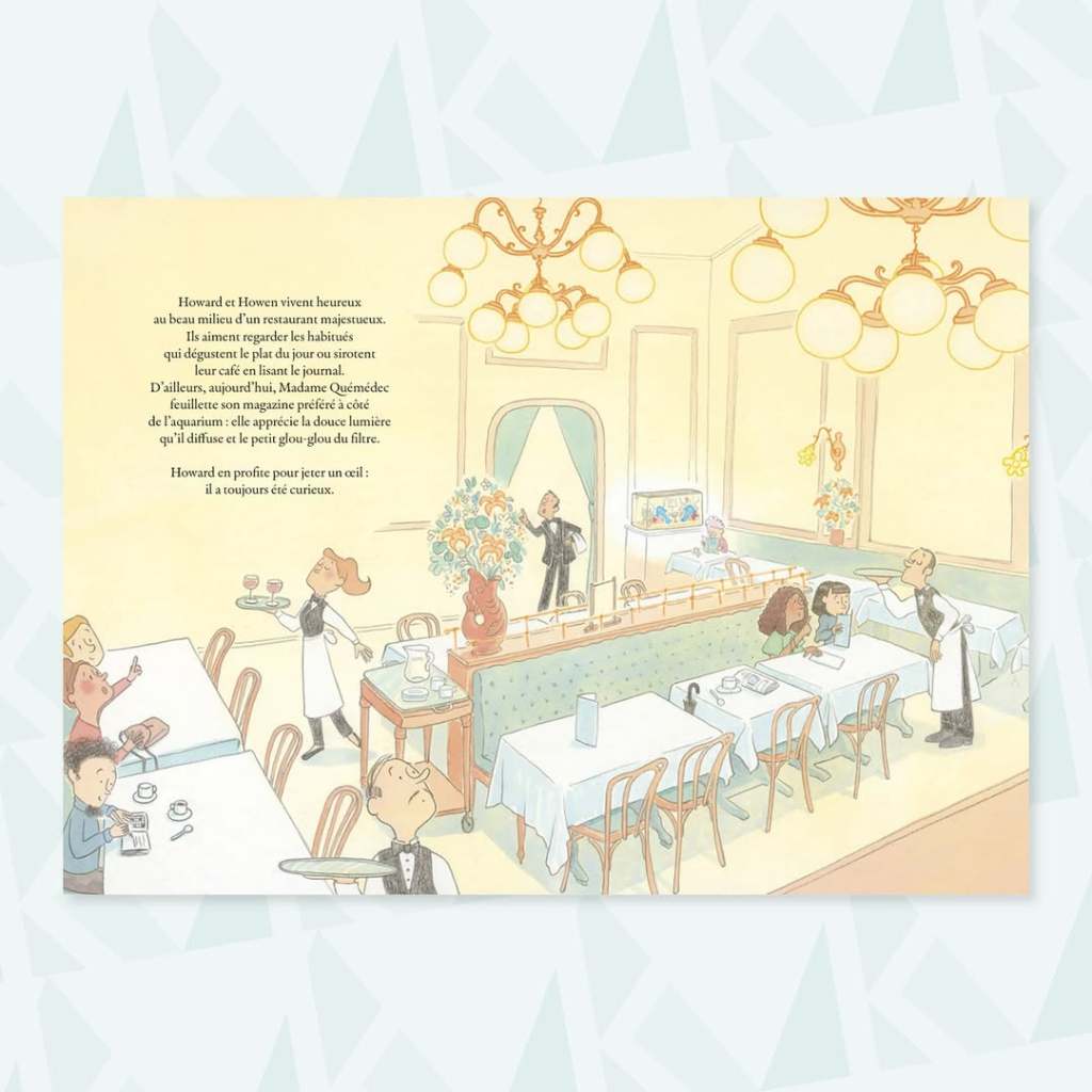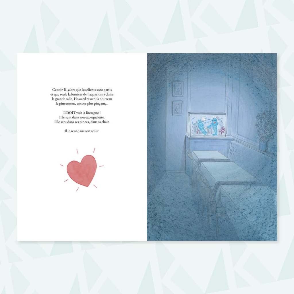 « Un homard pour la table quatre! » En attendant la sentence fatidique et ignorant tout de la bisque à laquelle ils seraient mangés, quelle idée!, Howard et Howen coule des jours heureux dans leur aquarium, bien en vue dans ce restaurant luxueux. Le duo d’homards bleus ont leur salon et, au son du glou glou, leur nourriture qui leur tombe toute cuite dans leurs « bouches ». Jusqu’au jour où l’oeil d’Howard croise un magazine vantant le bon air de la Bretagne. L’appel du grand large, il doit en avoir le coeur net. Howen, lui, est plus frileux.